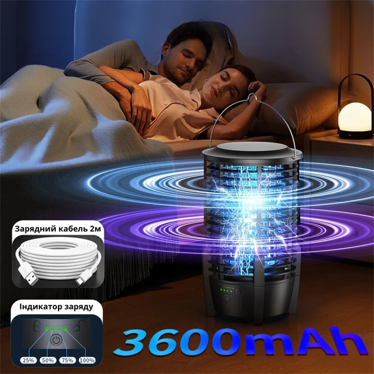 Антимоскітна лампа акумуляторна портативна з пасткою від комах,світильник знищувач комарів і мух