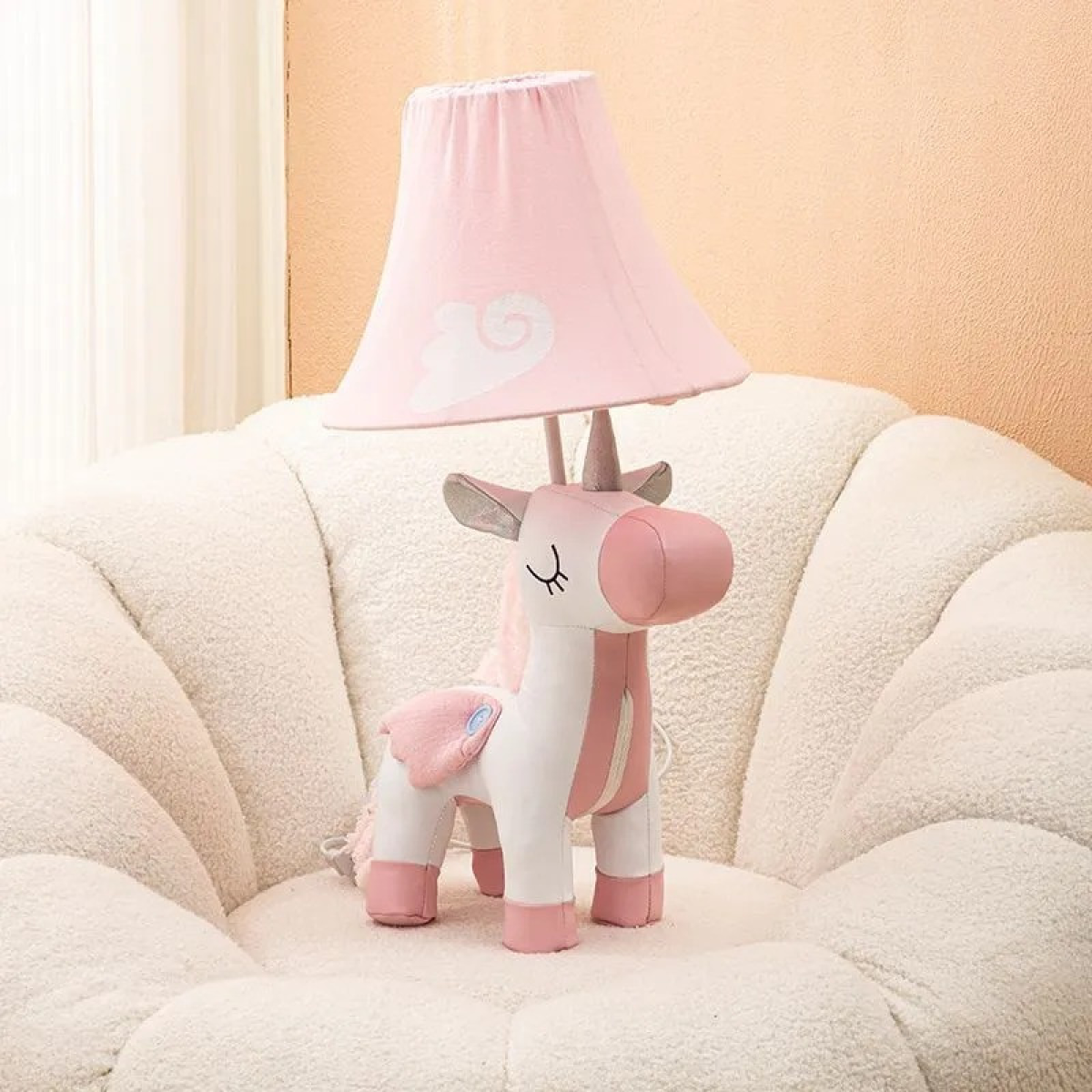 Настільна лампа «Єдиноріг» – стиль і затишок у дитячій кімнаті Чарівна настільна лампа «Єдиноріг» стане ідеальним доповненням дитячої кімнати. Її корпус із м“якою PU leather-обробкою приємний на дотик, а гнучкі лапи та корпус дозволяють змінювати положення світильника, підлаштовуючи його під потреби дитини. Основні характеристики: Матеріал корпусу: метал Матеріал обробки: PU leather (приємний на дотик) Гнучкі лапи та корпус для зручної зміни положення Висота: 50 см Діаметр абажура: 30 см Джерело світла: E27 (лампа в комплект не входить) Потужність: 31W-40W Напруга: 110В~240В Довжина шнура: 1,5 м (EU-plug) Перемикач: кнопковий Освітлювана площа: 2-3 м² Ця лампа подарує м“яке та комфортне світло, створюючи в кімнаті затишну атмосферу для читання, творчості та відпочинку.