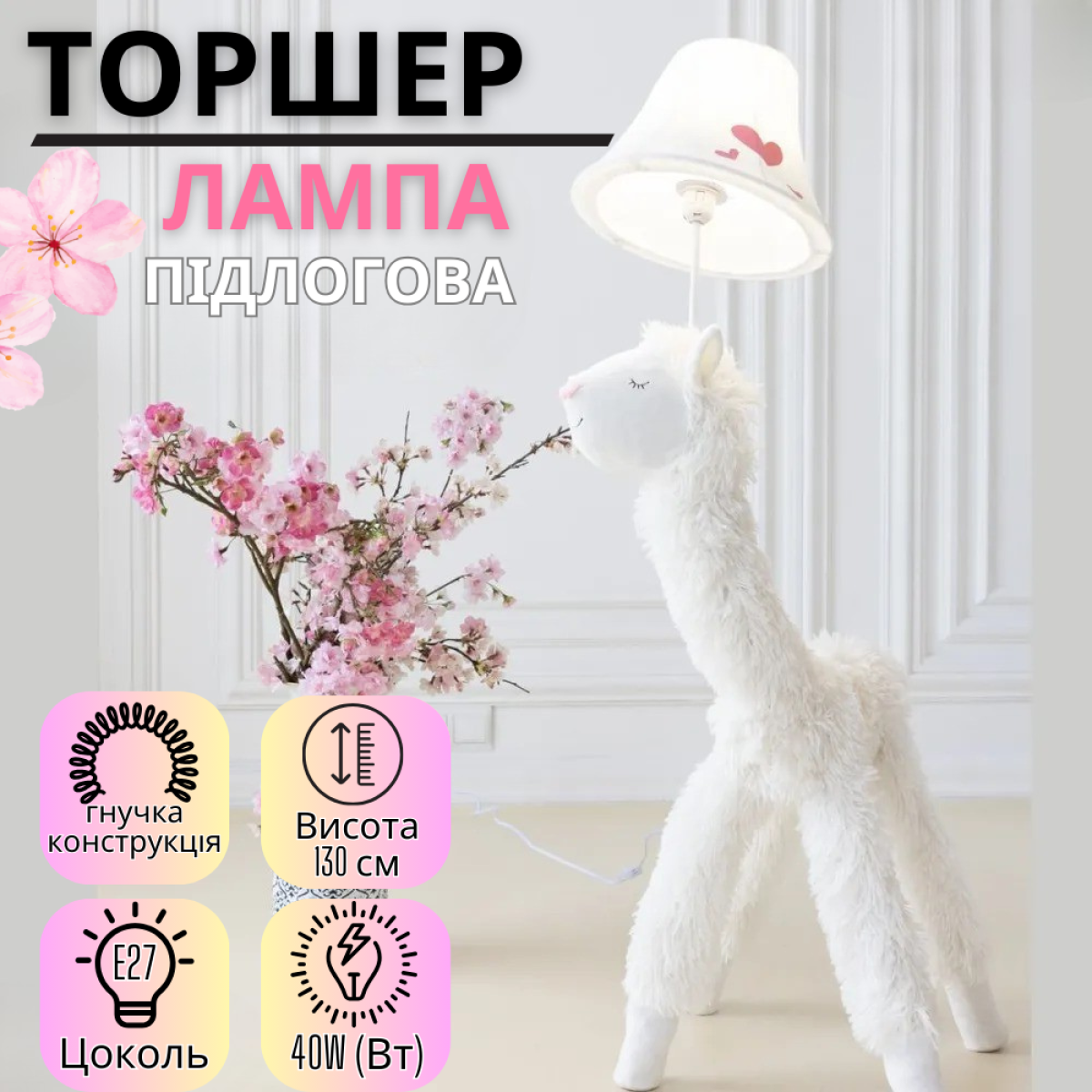 Світильник підлоговий, лампа в дитячу кімнату “Альпака” торшер в дитячу спальню, цоколь Е27, потужність 40W