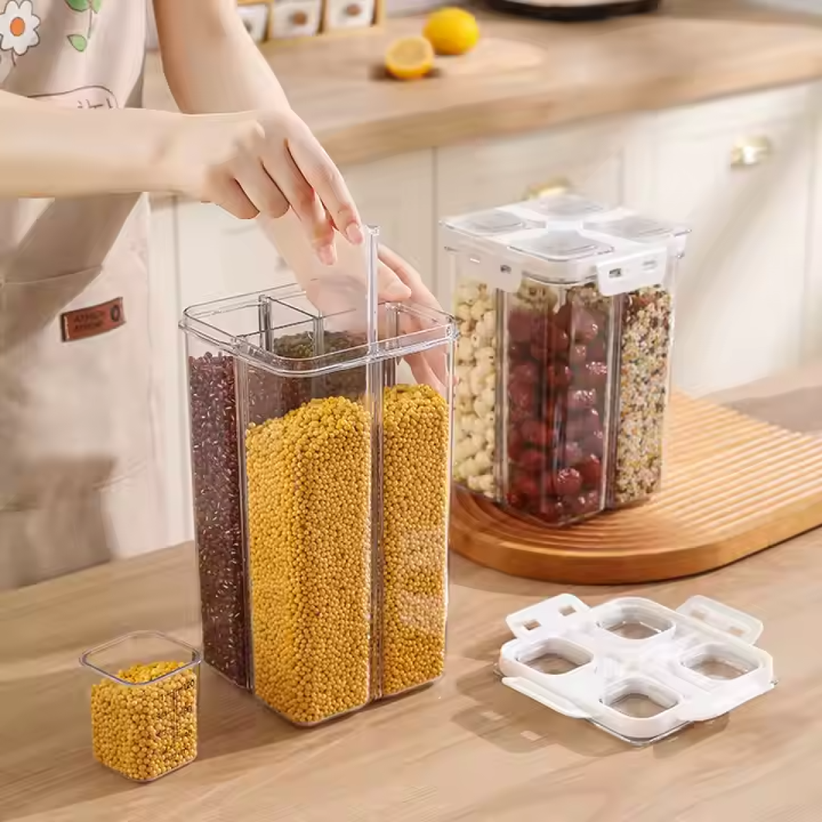 Прозорий контейнер для круп, герметичний кухонний органайзер на 4 відділи, об“єм 3 л, розмір 24.5×13.5 см