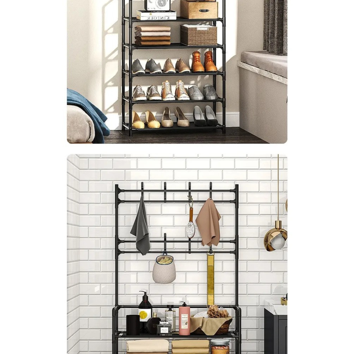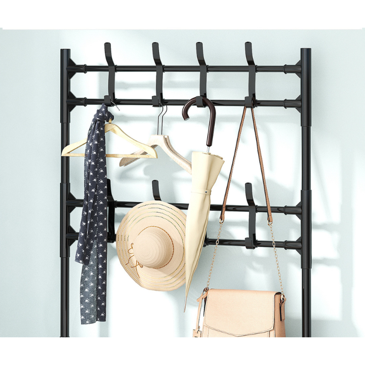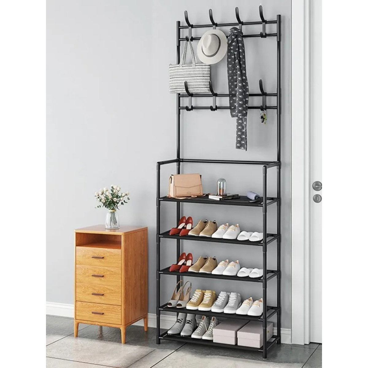 Поличка з вішаком для передпокою 25х60х150, Органайзер для взуття та одягу з 6 полицями, Чорного кольору