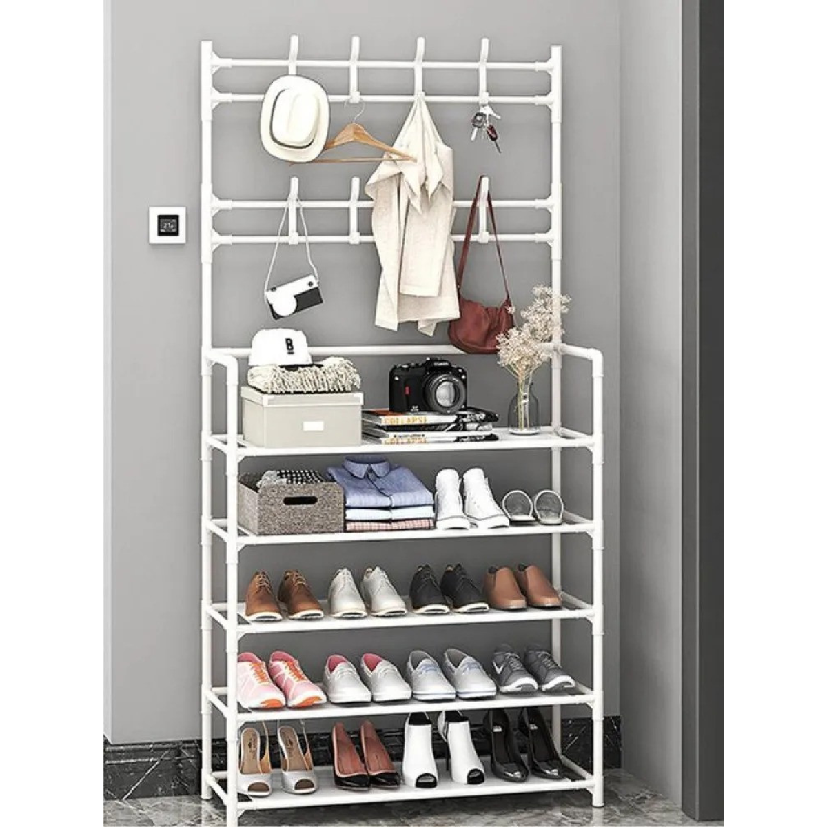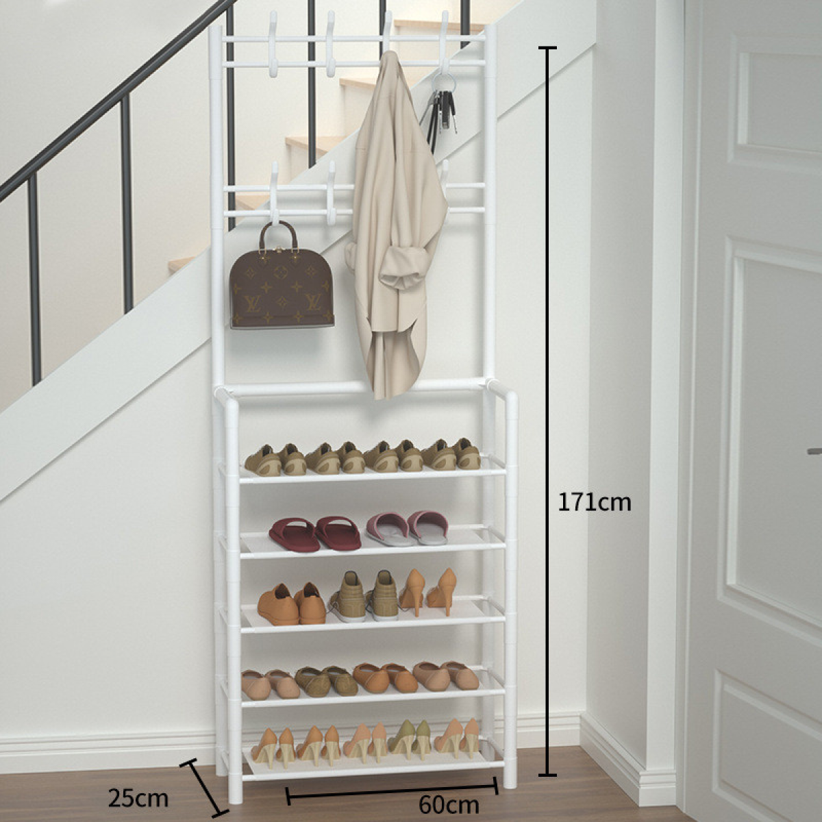 Поличка з вішаком для передпокою 25х60х150, Органайзер для взуття та одягу з 6 полицями, Білого кольору