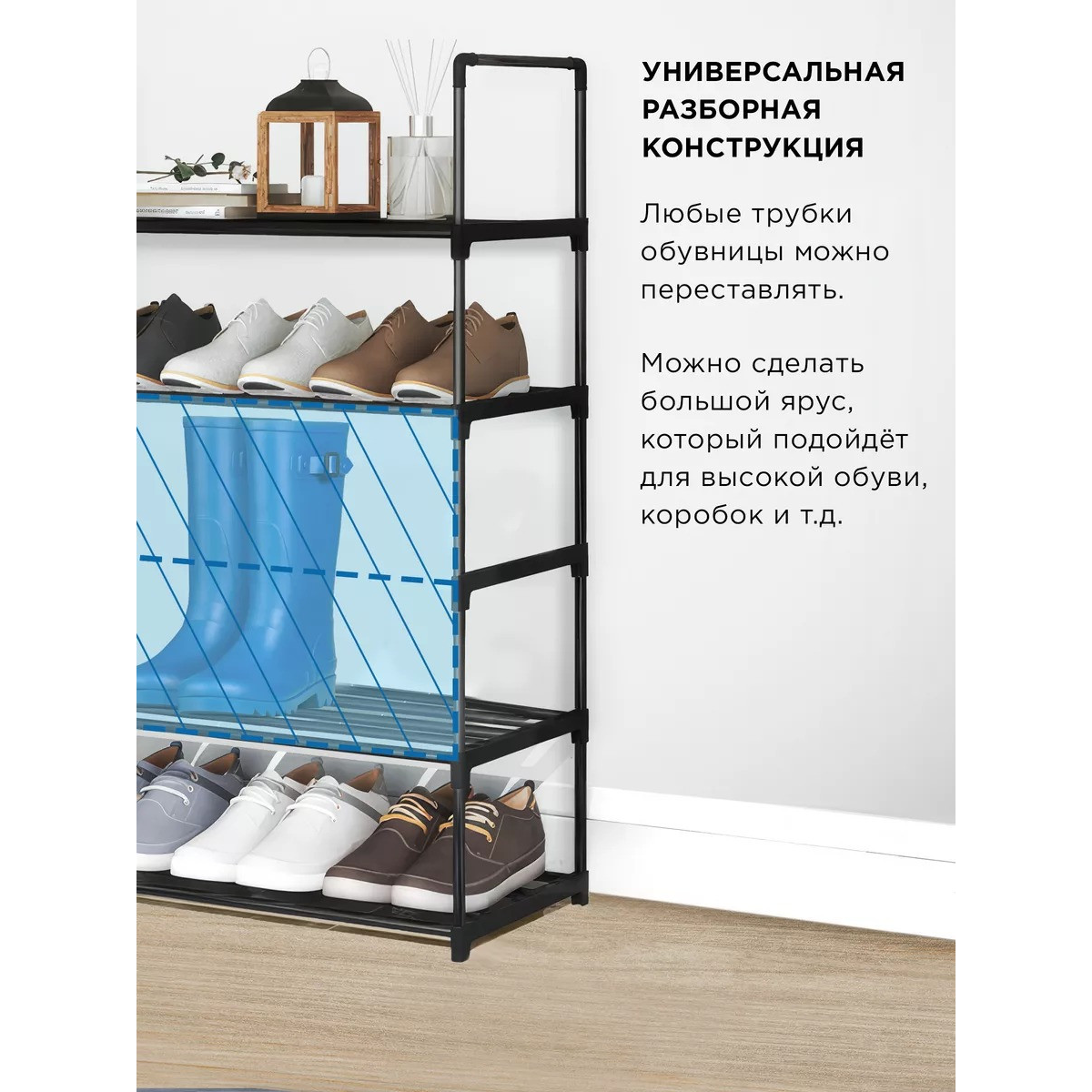 Модульна поличка для взуття, чорний органайзер на 4 полички для прихожої 85x72x28 см Чорна