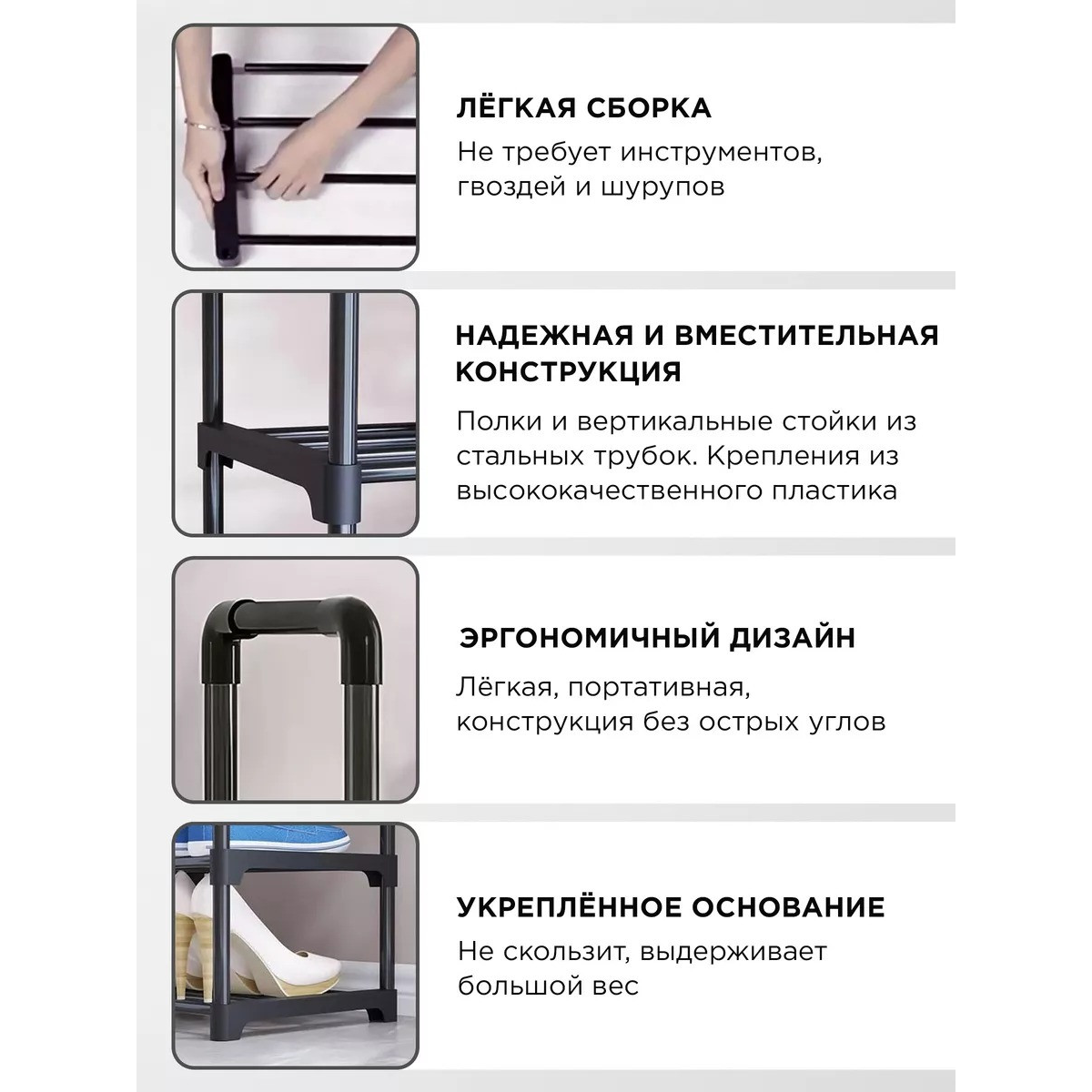 Модульна поличка для взуття, чорний органайзер на 5 поличок для прихожої 85x90x28 см Чорна