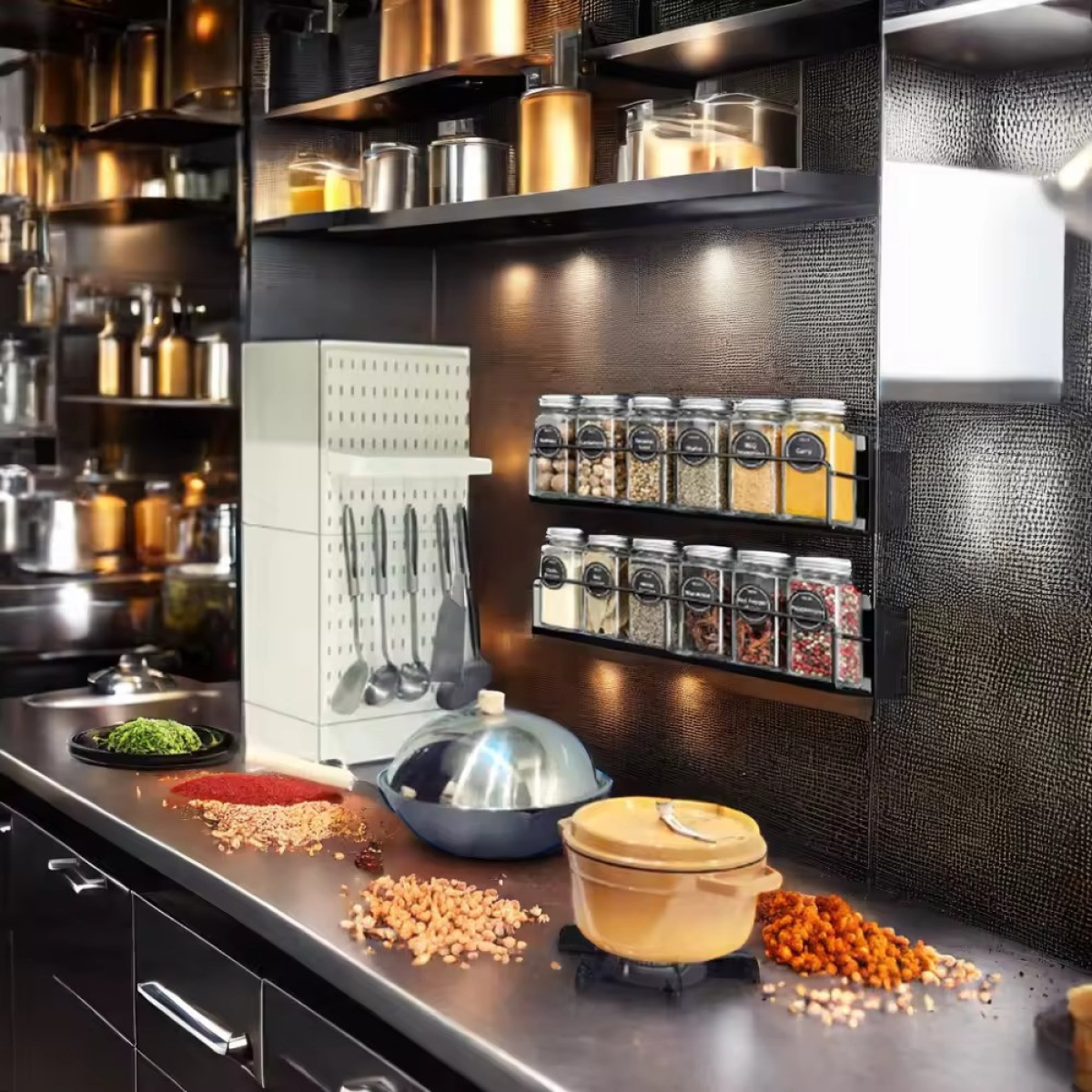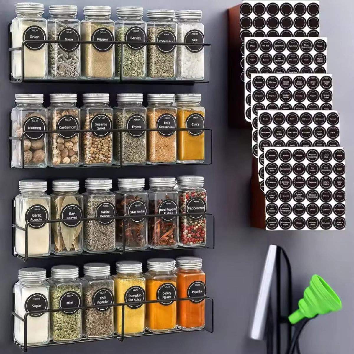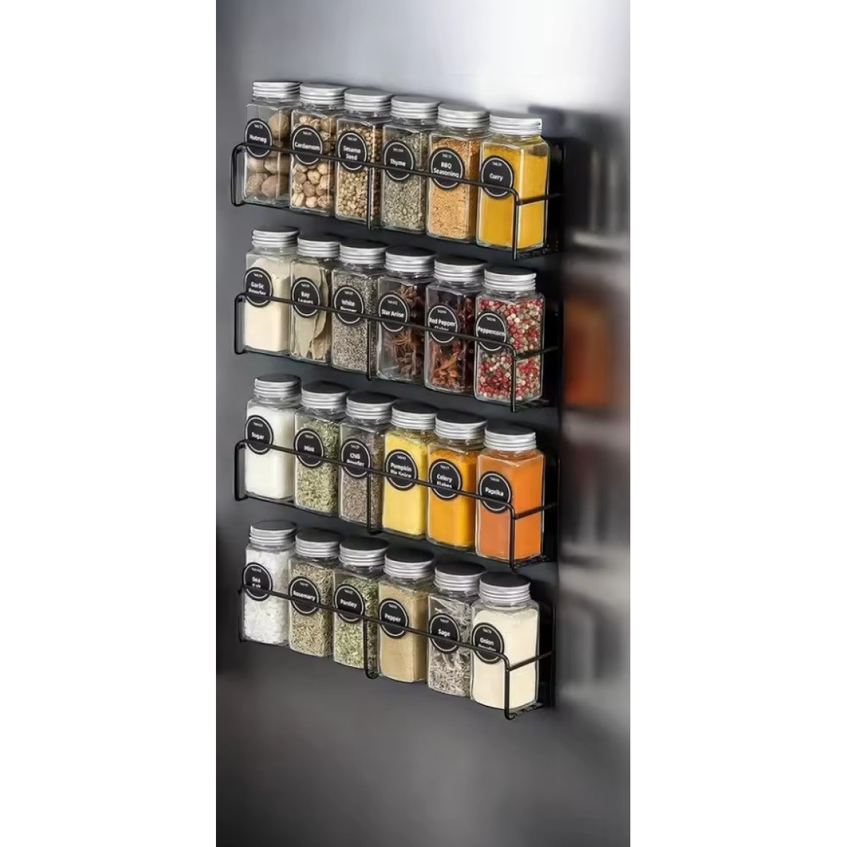 Набір для спецій у комплекті 24 банки та 4 магнітних полиці металеві, чорний