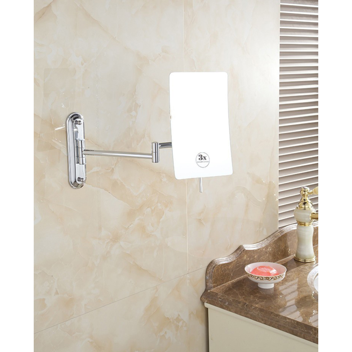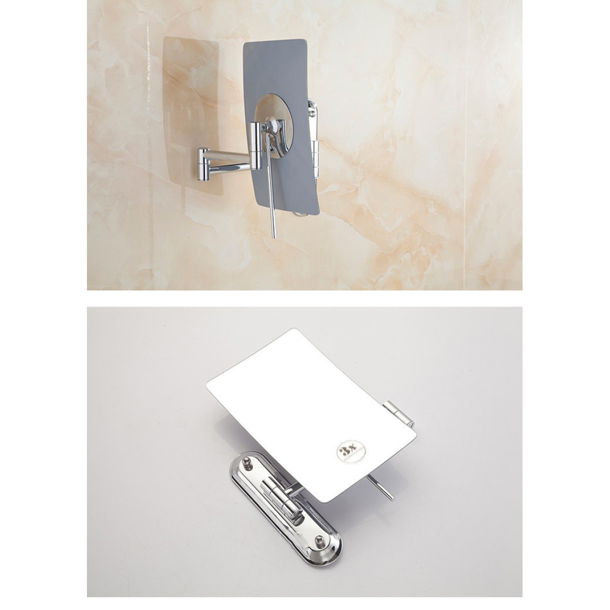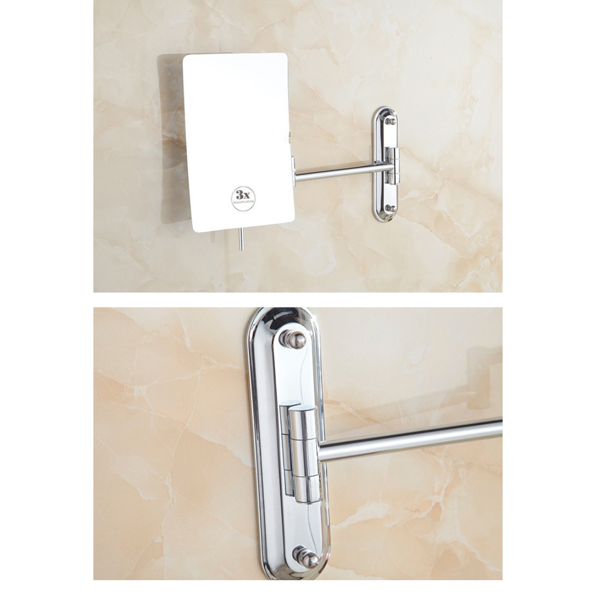 Дзеркало косметичне Miror знімне з збільшенням х3, висувне настінне Металік