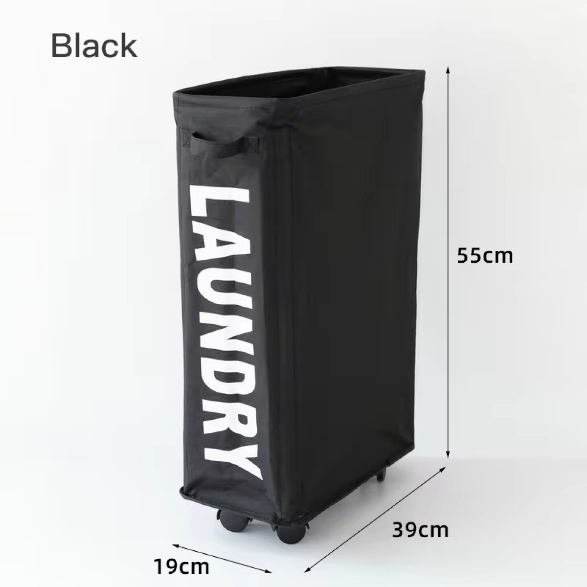 Кошик зі знімним мішком сіткою для білизни, складний на колесах, чорний