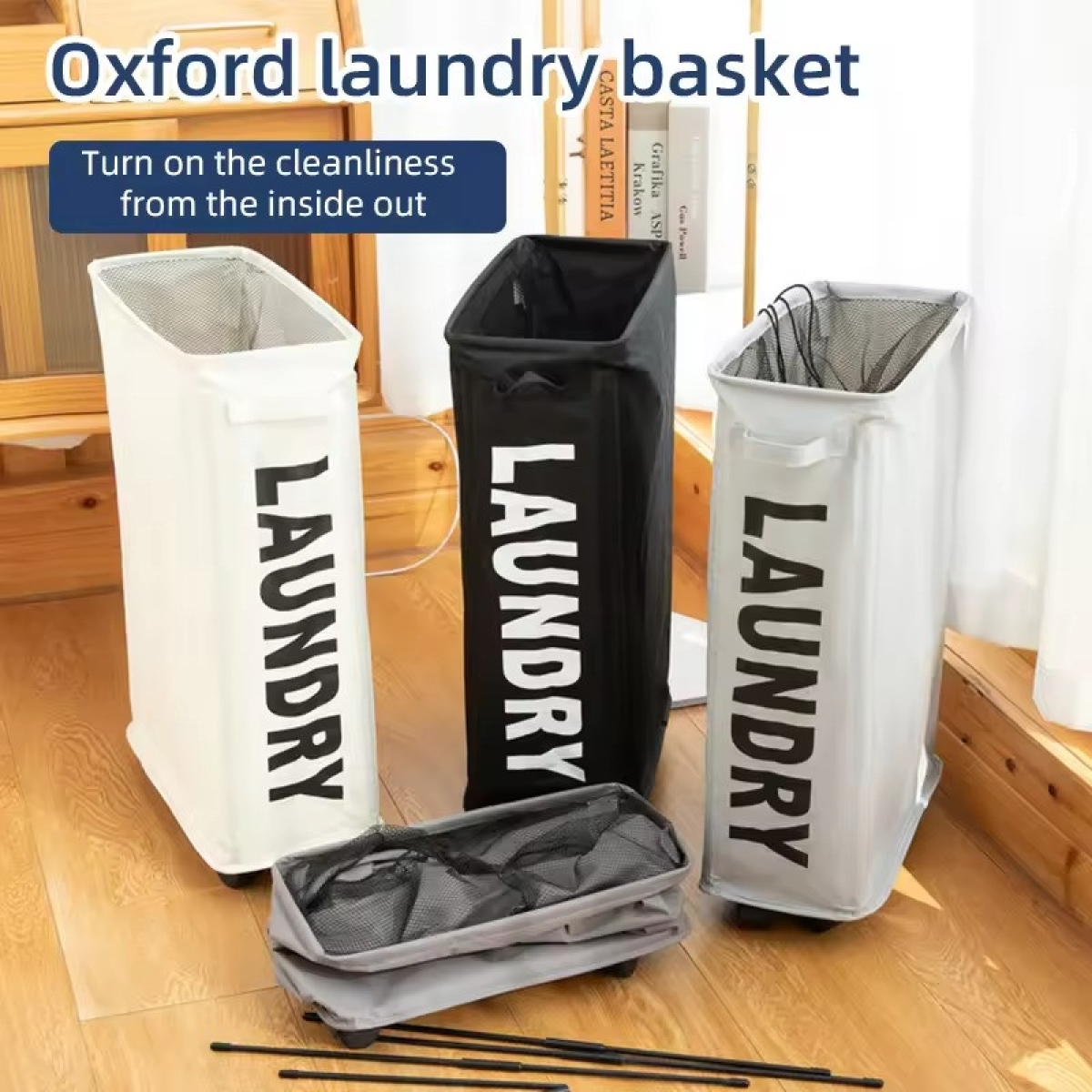 Кошик зі знімним мішком сіткою для білизни, складний на колесах, сірий