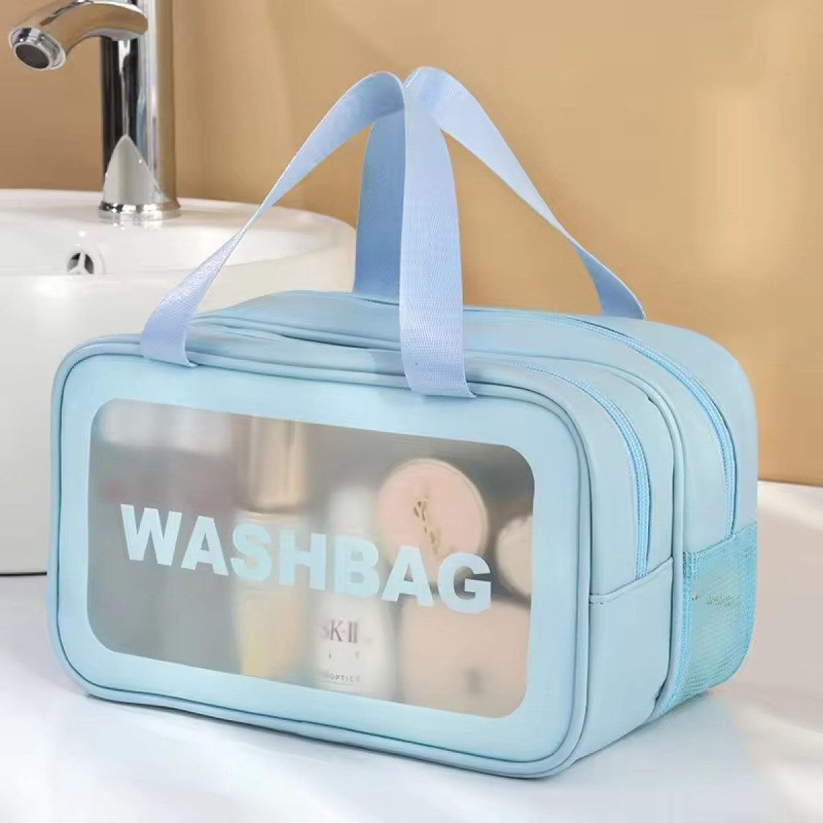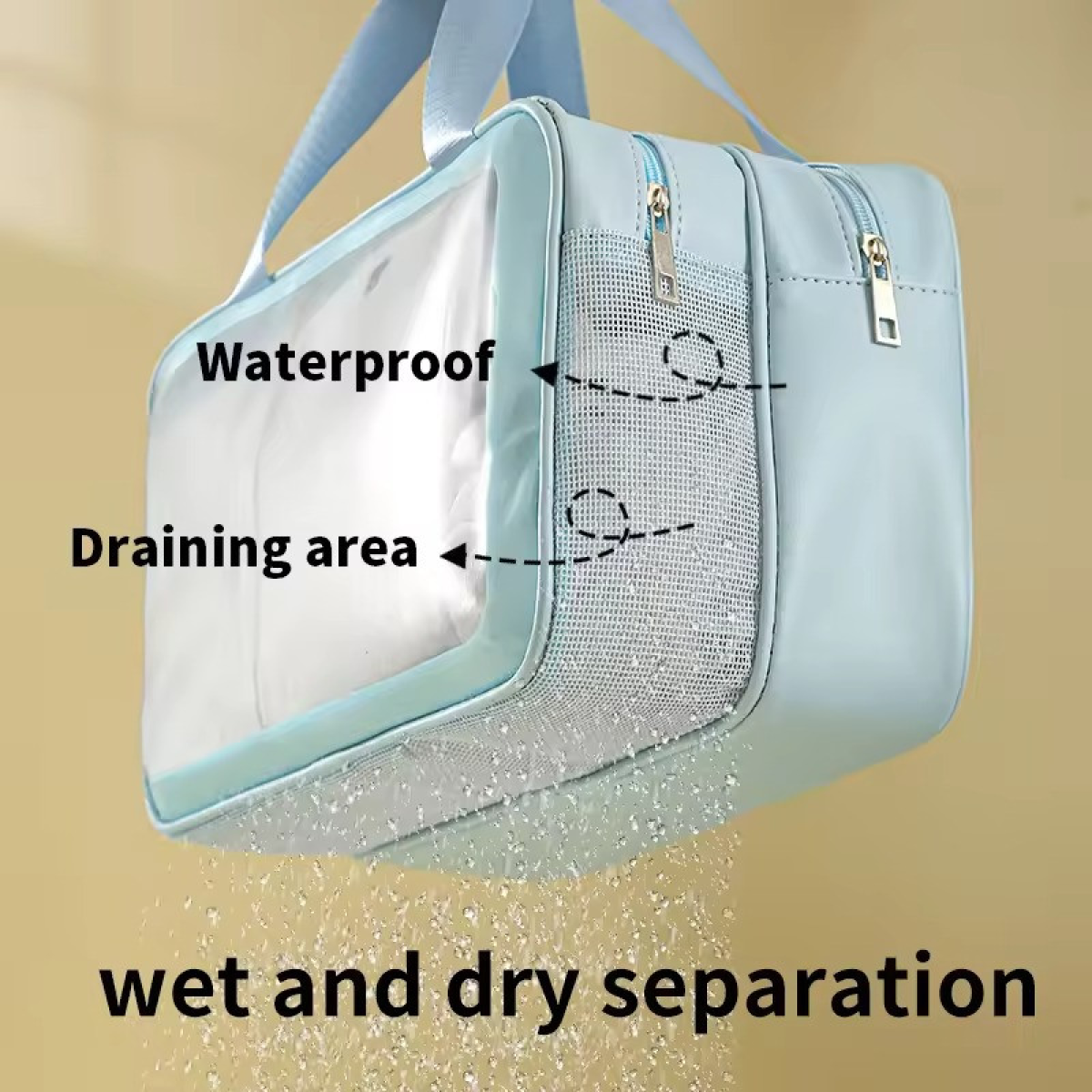 Косметичка у ванну кімнату на 2 відділення для сухих і вологих речей, блакитна