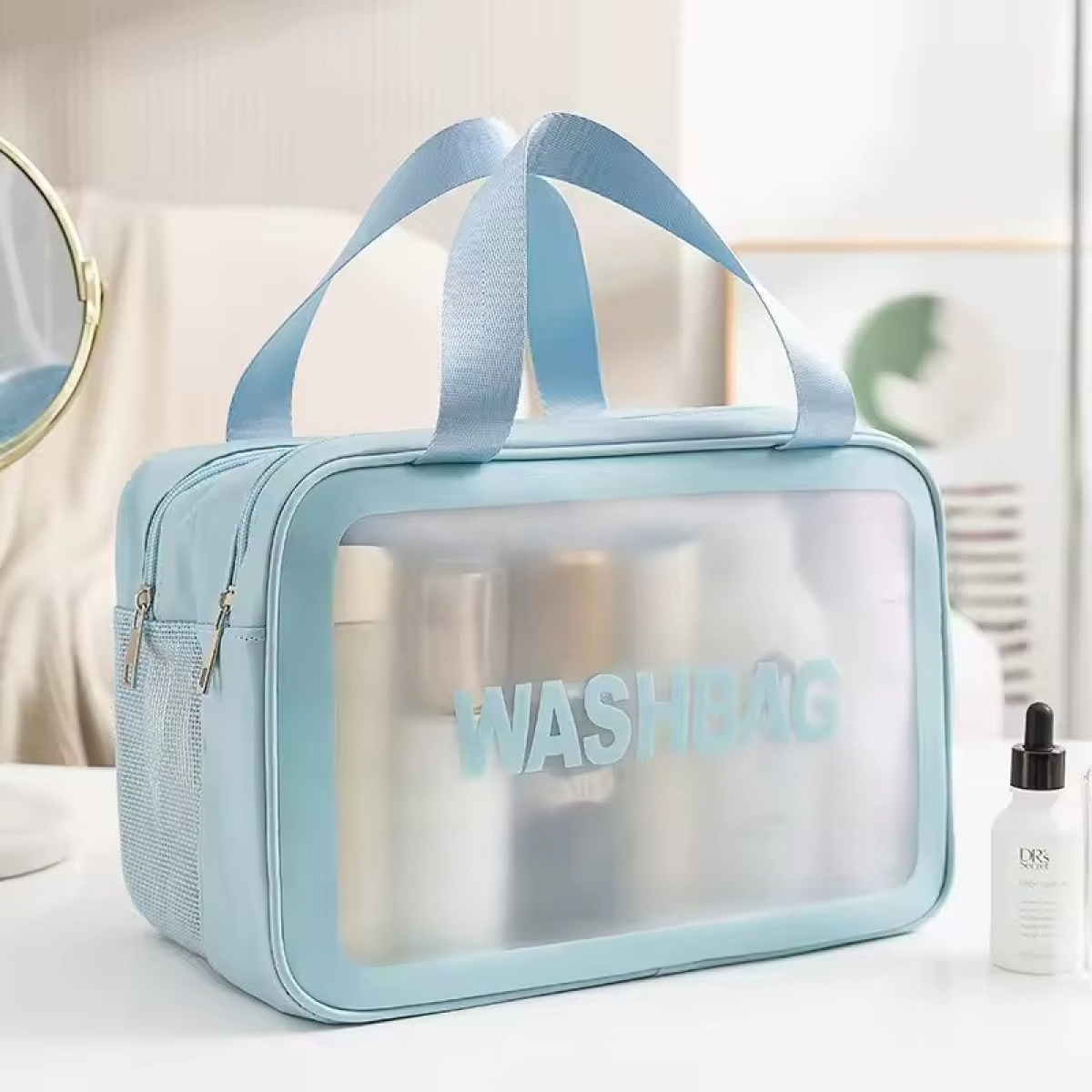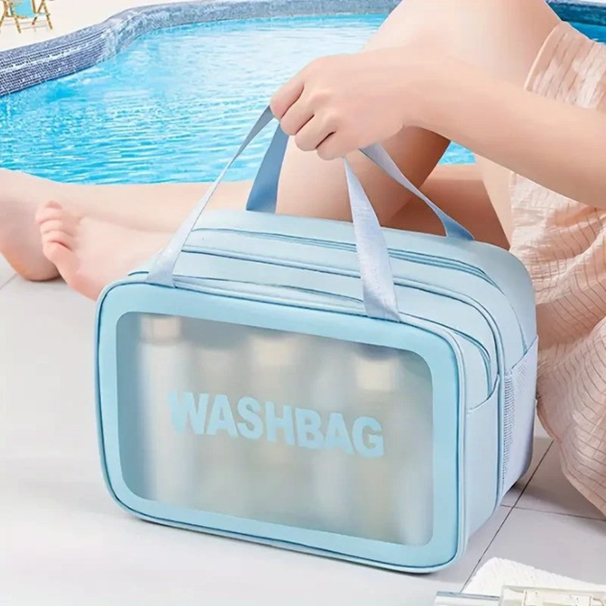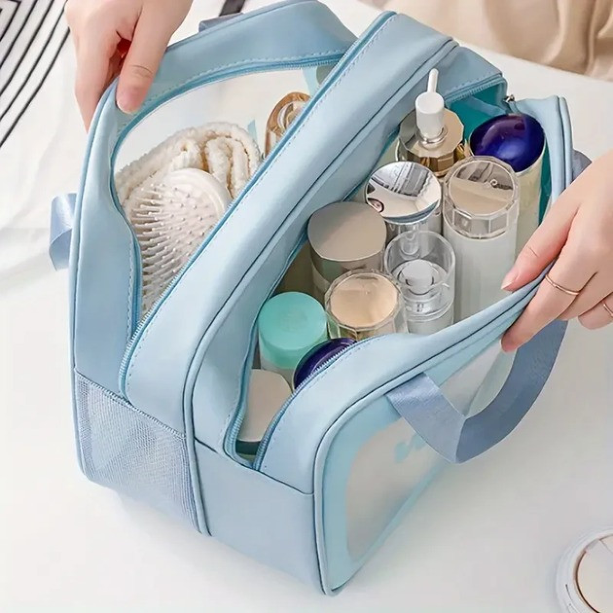 Косметичка зі штучної шкіри на 2 відділення у ванну для сухих і вологих речей, блакитна