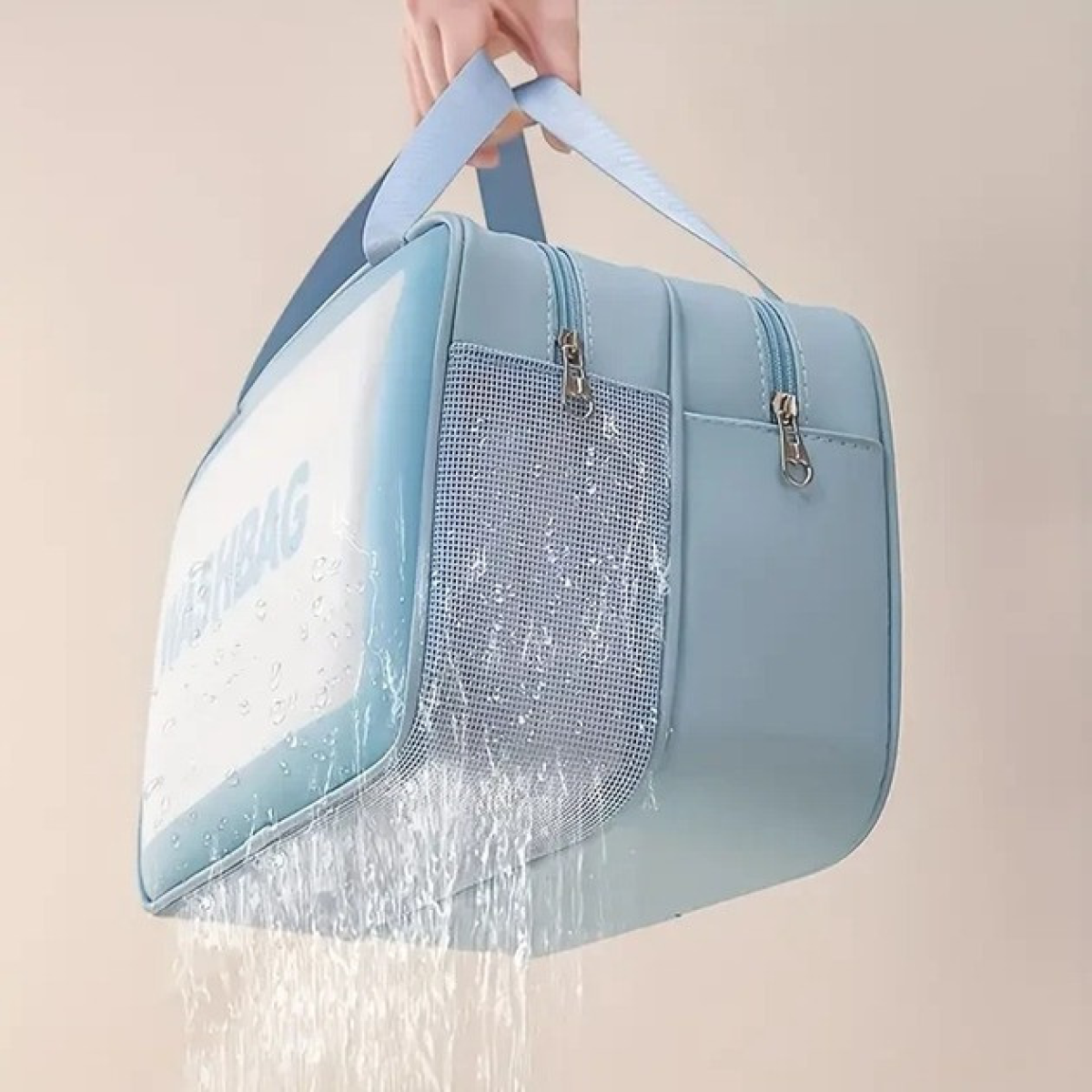 Елегантна і функціональна косметичка для ванної кімнати Ця стильна косметичка зі штучної шкіри ідеально підходить для організації вашого косметичного та гігієнічного приладдя у ванній кімнаті. З її двома відділеннями, розділеними спеціально для сухих і вологих речей, вона допомагає зручно зберігати і розділяти предмети залежно від їхнього типу використання. Штучна шкіра забезпечує міцність і легкість у догляді, що робить цю косметичку ідеальним вибором для вологого середовища у ванній. Практичний поділ для зручності Перше відділення призначене для сухих предметів, як-от пензлі, помади та компактні пудри. Воно оснащене кількома кишенями і відділеннями різного розміру для зручної організації дрібниць. Друге відділення спеціально призначене для вологих предметів, включно з губками, серветками та мочалками. Вбудовані отвори для вентиляції допомагають запобігти скупченню вологи і забезпечують швидке висихання вмісту. Стильний дизайн і легкість у догляді Дизайн косметички поєднує в собі елегантність і практичність: гладка штучна шкіра легко миється і не боїться води, що робить її ідеальною для ванної кімнати. Зручні ручки дають змогу легко переносити косметичку по дому або на подорожі. Цей аксесуар не тільки організує вашу косметику, а й додасть шарму вашому інтер“єру завдяки своєму стильному зовнішньому вигляду і практичності.