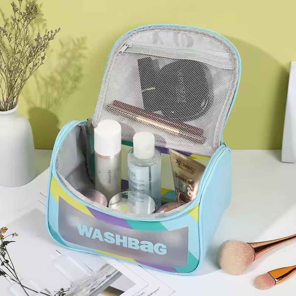 Косметичка жіноча прозора, для ванного приладдя, дорожня, водонепроникна, блакитна