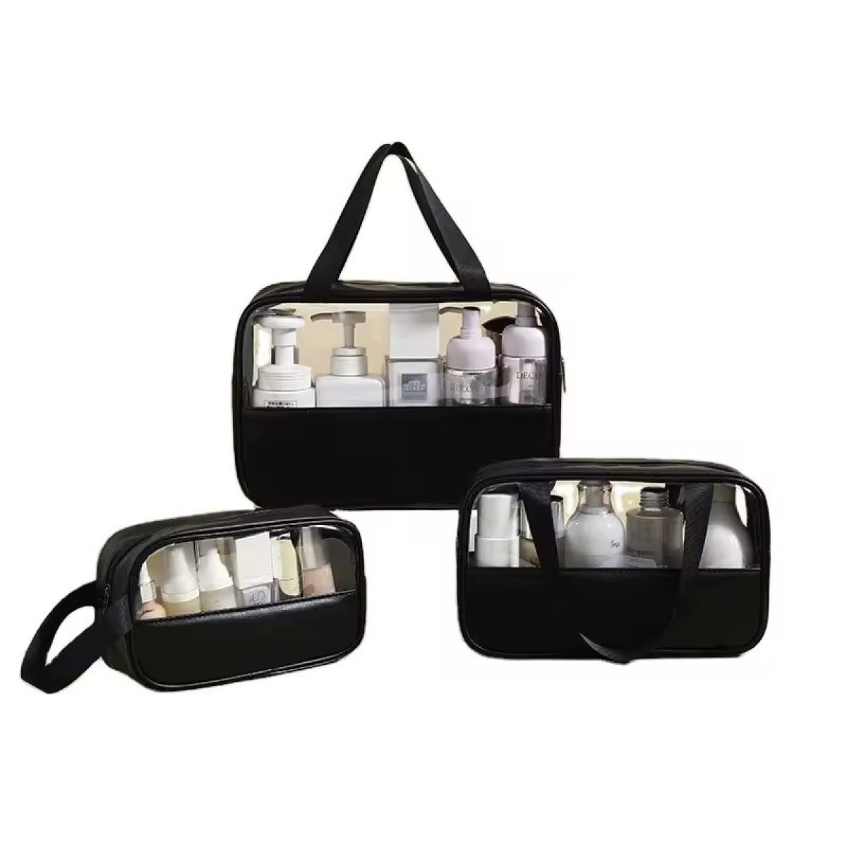 Набір косметичок жіночих 3 шт, для душу, чорні, прозорі