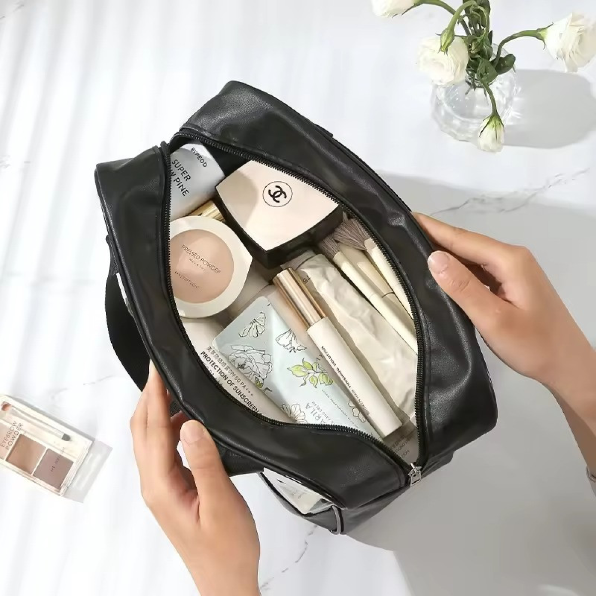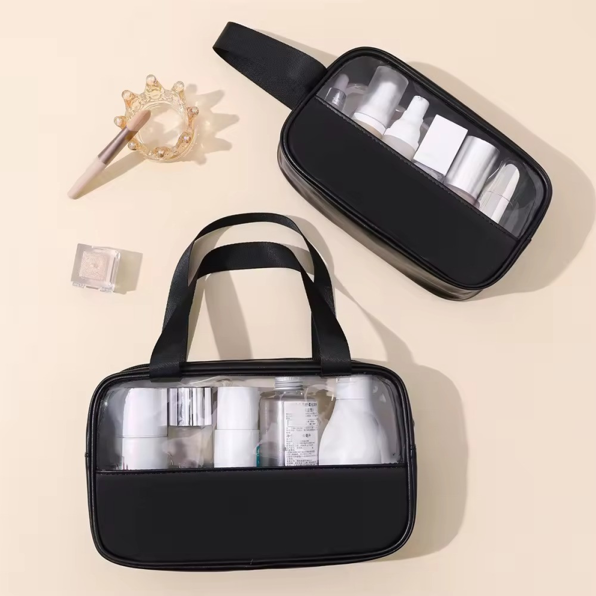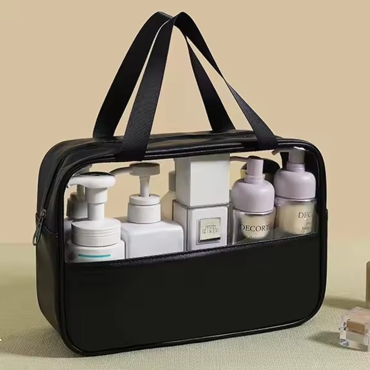 Елегантні та практичні косметички для жінок Ідеально підходять для організації ваших косметичних засобів і аксесуарів у ванній, косметички забезпечать вам стиль і функціональність. Кожна косметичка виконана з міцного ПВХ і оснащена надійною блискавкою для захисту вмісту від пилу і вологи. Різноманітність розмірів для всіх ваших потреб Набір включає три різні розміри: компактні косметички розміром 22 х 8 х 12 см, що ідеально підходять для щоденного використання, середні розміри 26 х 10 х 15 см для більш об“ємних предметів, а також великі косметички 26 х 12 х 21 см, які вмістять усі ваші улюблені продукти для догляду за шкірою і волоссям. Прозорі вікна для легкого доступу до ваших речей Кожна косметичка оснащена прозорими вікнами, що дає змогу легко бачити вміст і швидко знаходити необхідні предмети без зайвого безладу. Ці стильні та функціональні косметички стануть незамінними помічниками у вашому щоденному ритуалі догляду за собою, додаючи зручність і елегантність у вашу ванну або сумку.