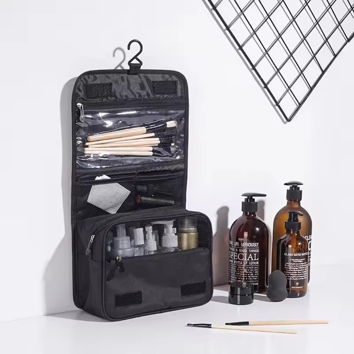 Косметичка з підвісним гачком дорожня для ванної, чорна
