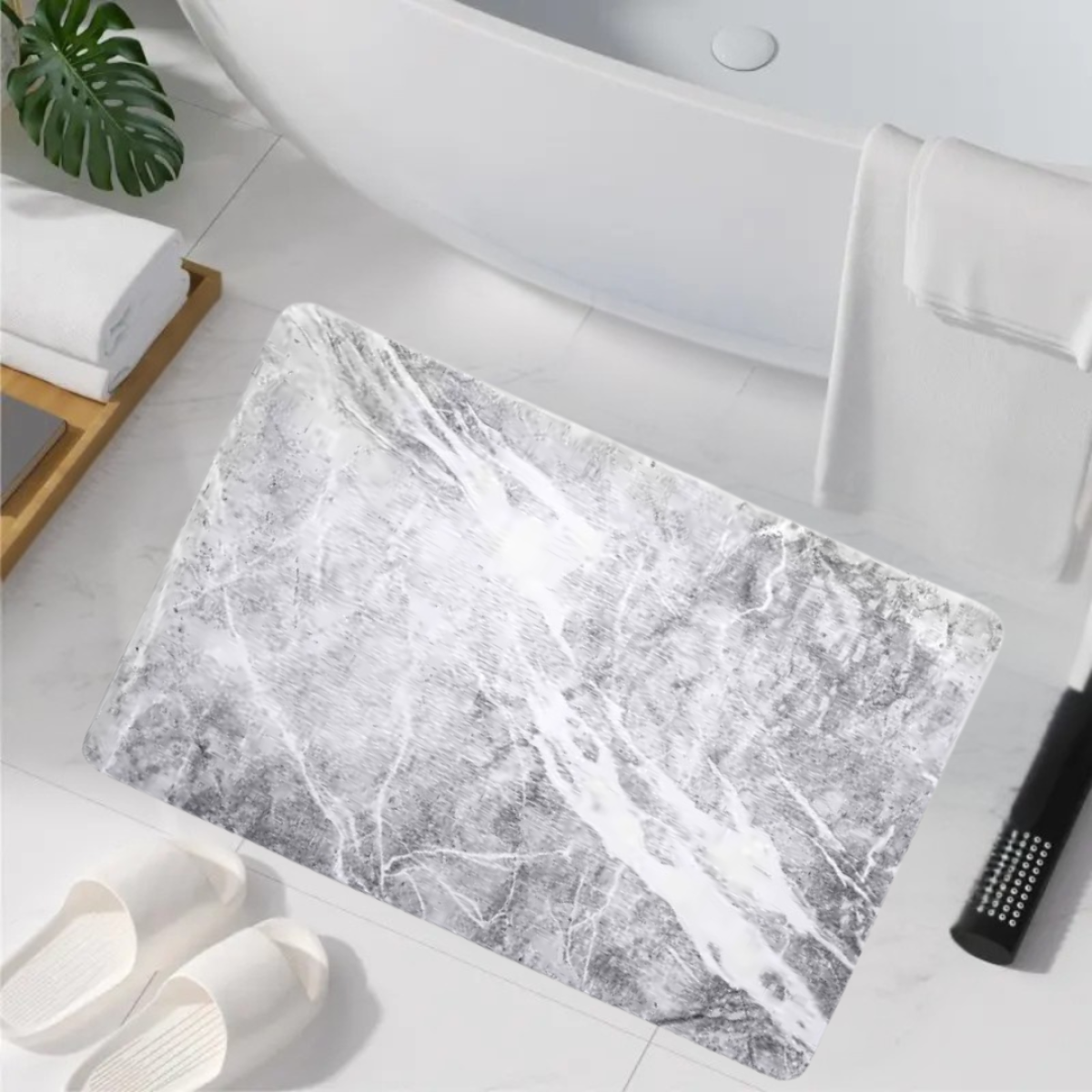 Килимок завтовшки 9 мм миттєво вбирає вологу - всього за 30 секунд, запобігаючи утворенню вогкості та цвілі. Антиковзаюча поверхня забезпечує безпеку на мокрих і слизьких підлогах, а безворсова структура унеможливлює накопичення пилу та бруду. Легкий догляд без необхідності прання робить його особливо зручним для щоденного використання.
