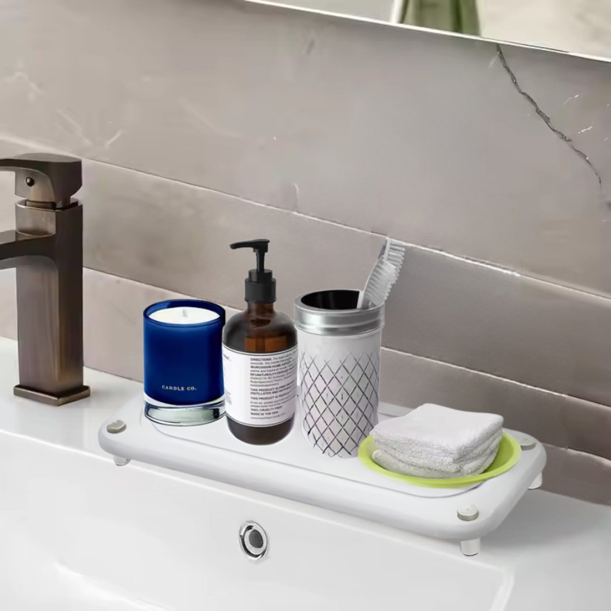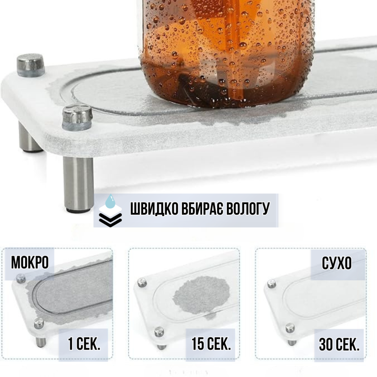 Підставка універсальна для ванної кімнати душа, кухні для приладдя кам“яна з діатоміту біла