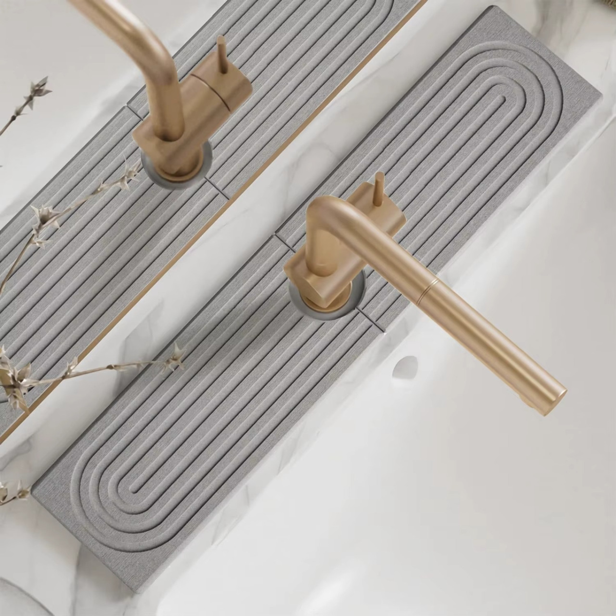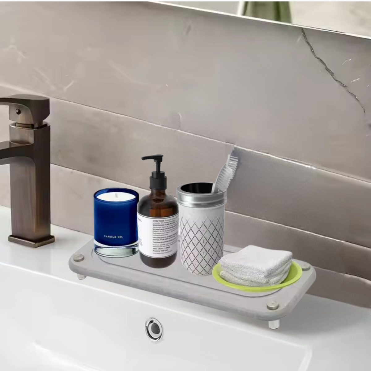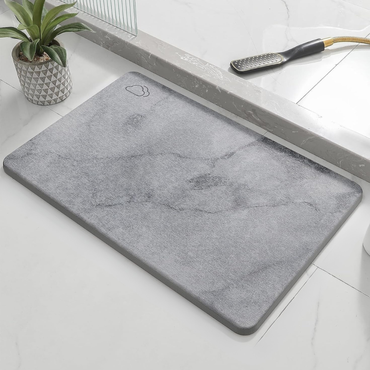 Комплект для ванної та душу: стиль і зручність Комплект аксесуарів для ванної кімнати та душу у світло-сірому кольорі стане чудовим рішенням для створення затишку та комфорту. До набору входять три практичні предмети: килимок для ніг (60×39 см, товщина 9 мм), накладка-килимок для раковини або умивальника (60×10 см) і універсальна підставка для склянок або аксесуарів (20×10 см). Ці елементи не тільки прикрасять інтер“єр, а й допоможуть підтримувати чистоту і порядок у ванній кімнаті. Екологічний матеріал з унікальними властивостями Усі елементи комплекту виготовлені з діатоміту - природного матеріалу, що складається зі скам“янілих діатомових водоростей. Він має високу вологопоглинаючу здатність, швидко сохне і запобігає утворенню цвілі. Діатоміт безпечний для здоров“я, стійкий до зношування і не потребує складного догляду. Практичність і довговічність Килимок для ніг забезпечує приємні тактильні відчуття і запобігає ковзанню. Накладка-килимок на раковину ідеально підходить для розміщення мила та аксесуарів, зберігаючи поверхню сухою. Універсальна підставка може використовуватися для склянок, зубних щіток або інших предметів. Завдяки своїм вологостійким і антибактеріальним властивостям, комплект прослужить довго, зберігаючи чистоту і комфорт у вашій ванній кімнаті. Дизайн накладки і підставки на вибір! Особливості: Матеріал: діатоміт (екологічно чистий, вологопоглинаючий) Швидко сохне, не пліснявіє, не потребує особливого догляду Килимок для ніг: 60×39 см, товщина 9 мм Килимок-накладка на раковину: 60×10 см Підставка універсальна: 20×10 см