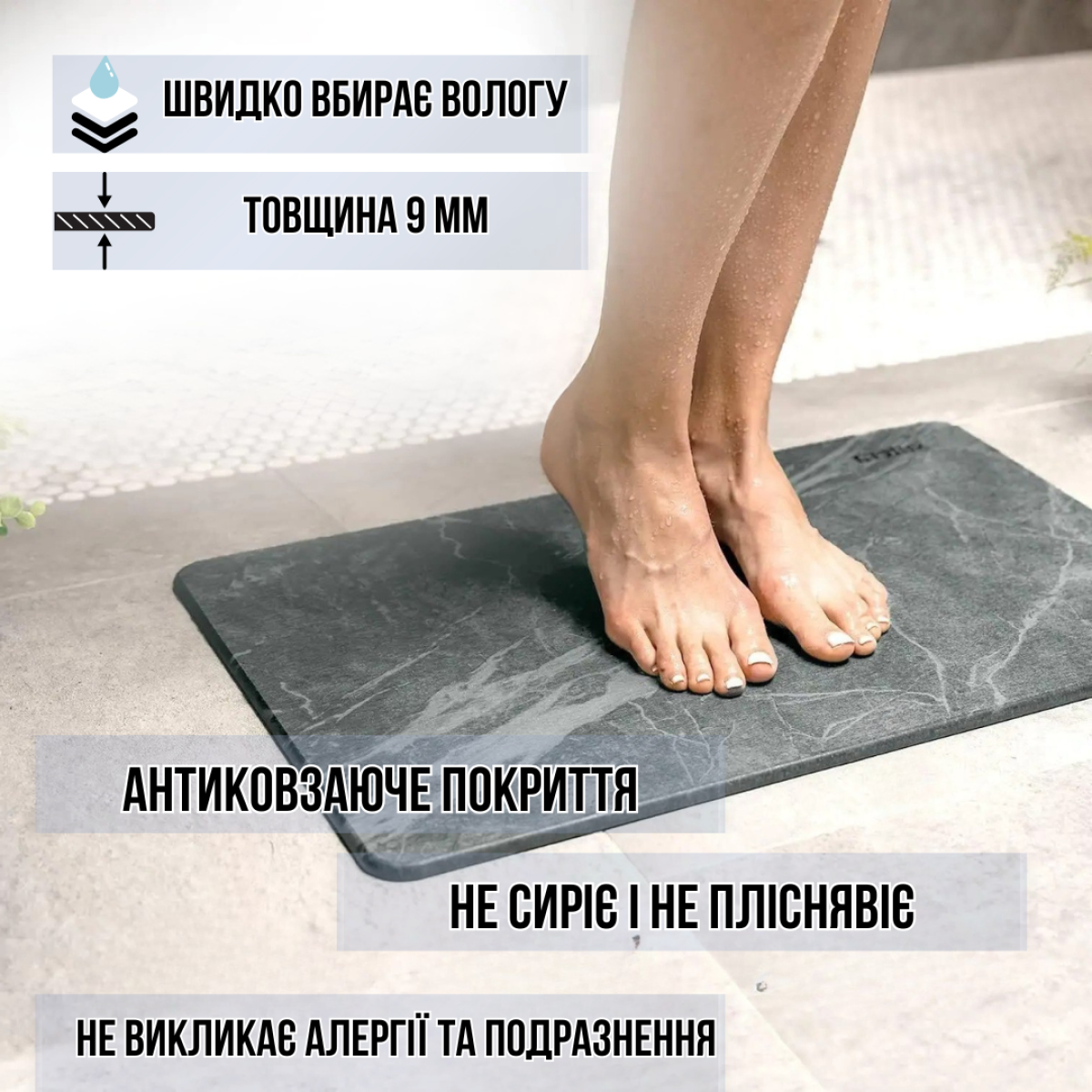 Килимок для ніг: 60×39 см, товщина 9 мм