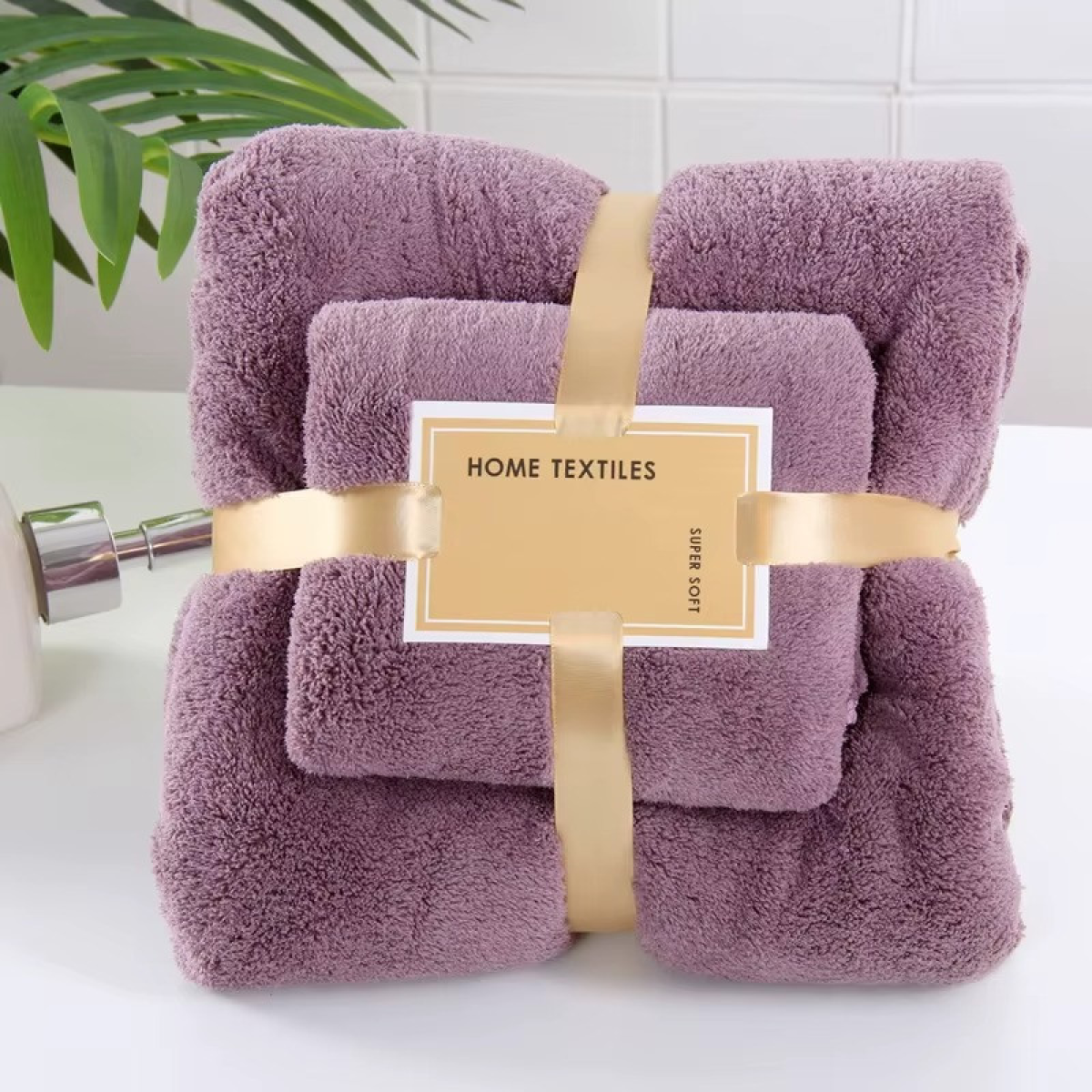 Набір 2 в 1 рушників для душу та ванни для обличчя й тіла, комплект банних флісових рушників темно-фіолетовий