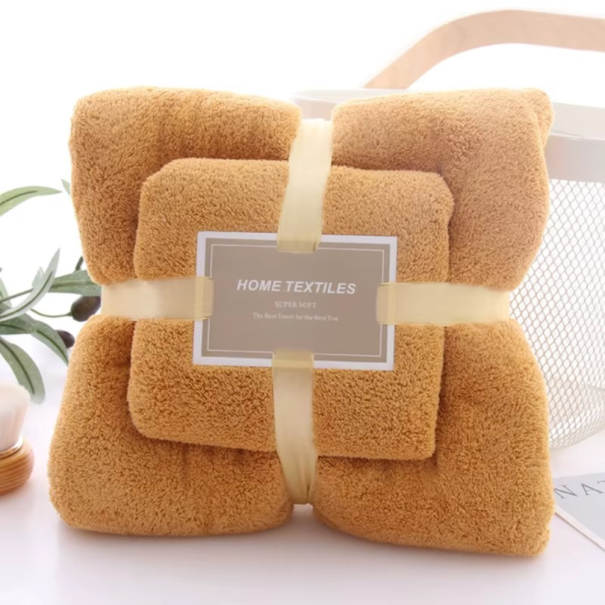 Набір 2 в 1 рушників для душу та ванни для обличчя і тіла, комплект банних флісових рушників 2 шт, імбирний