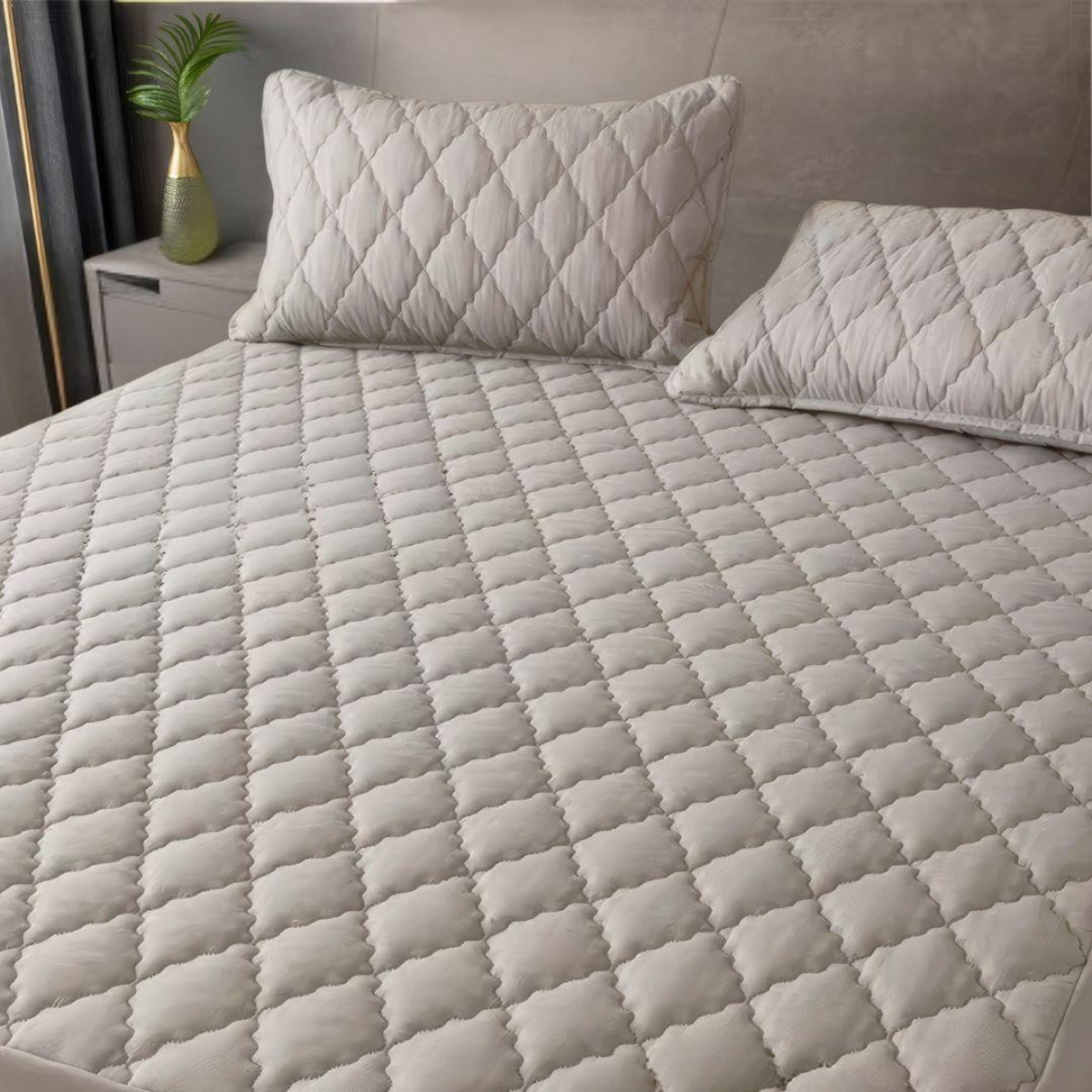 Комплект з водонепроникного простирадла 200*220см і двох наволочок - це практичне рішення для захисту матраца і подушок від вологи, пилу і забруднень. Простирадло надійно фіксується на матраці за допомогою гумки по всьому периметру, не ковзає і не комкається навіть під час неспокійного сну.
