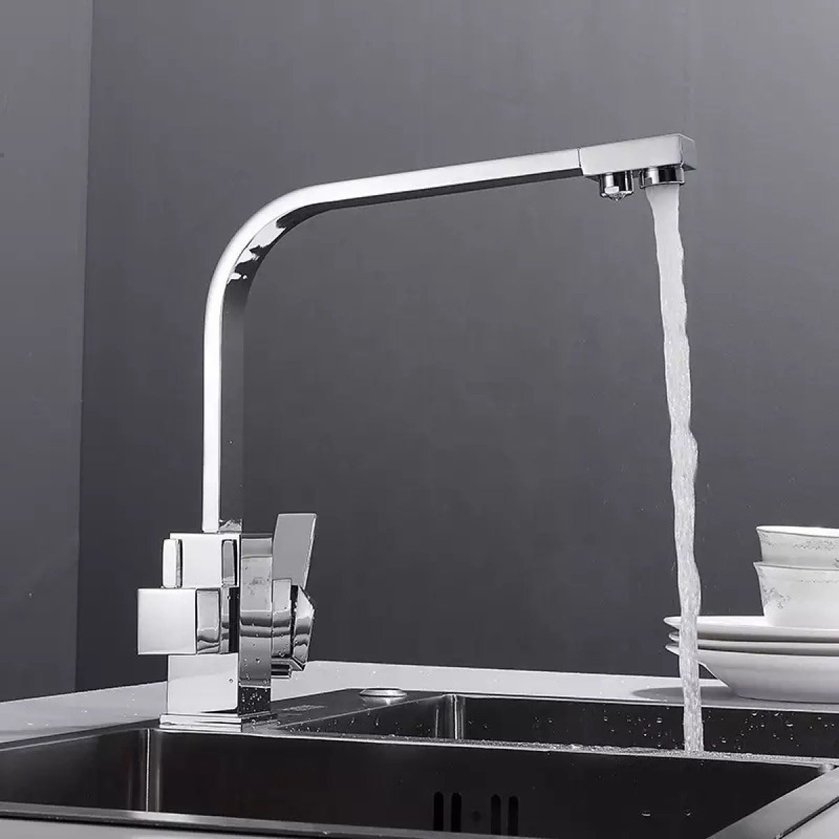 Змішувач для кухні WanFan, для гарячої і холодної води, 2 види подачі води, отвори для фільтрованої води,