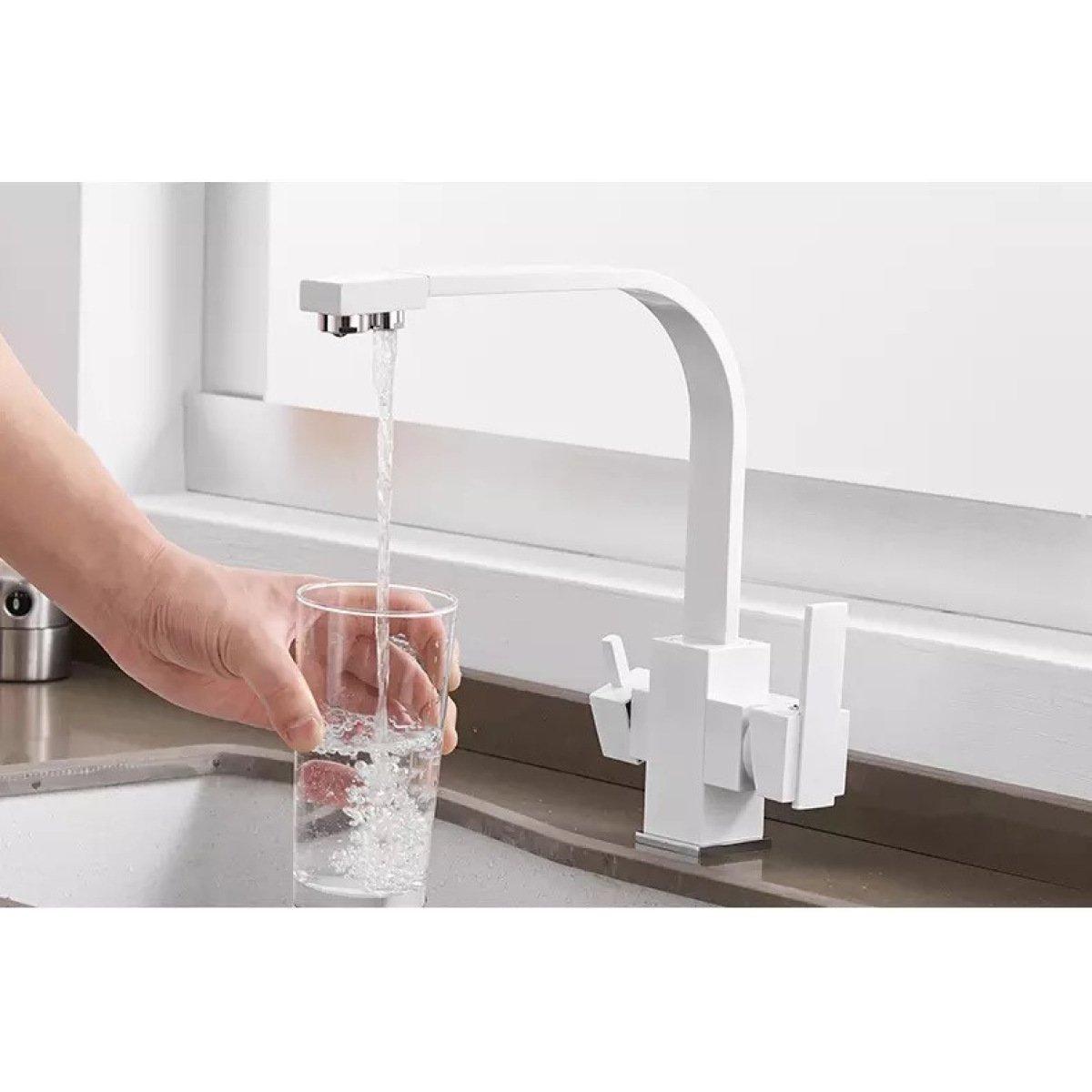 Змішувач для кухні WanFan, для гарячої і холодної води , люкс якість Білий матовий