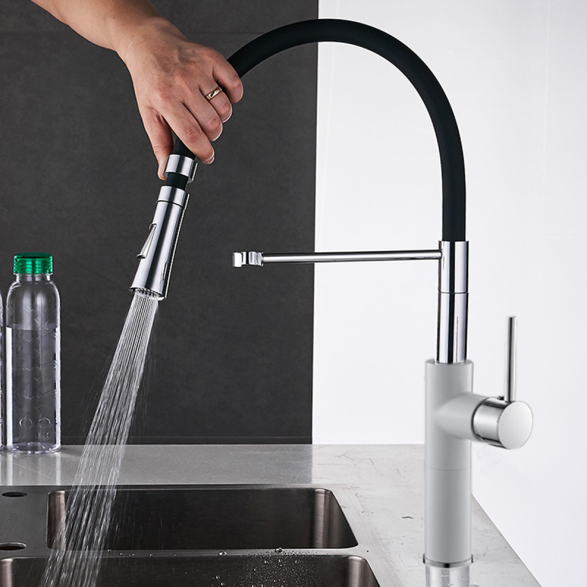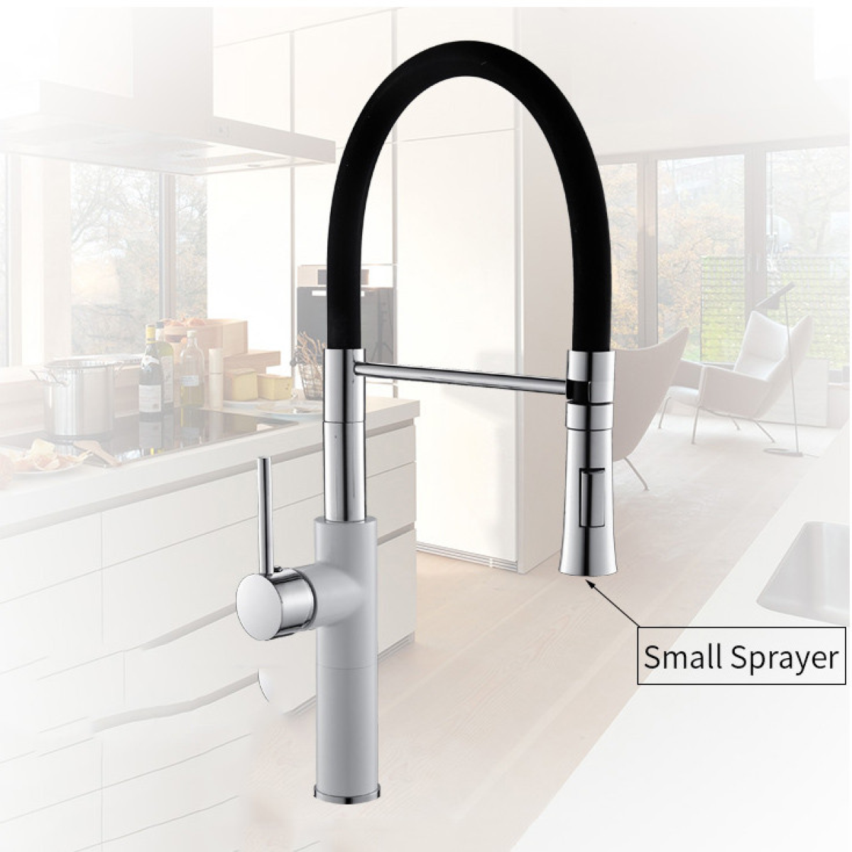 Змішувач кухонний WanFan з висувним зливом, для гарячої і холодної води, що обертається на 360 градусів, 2 вид