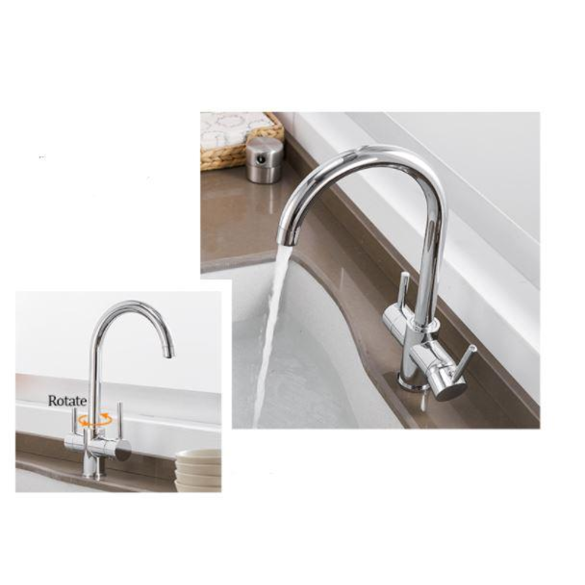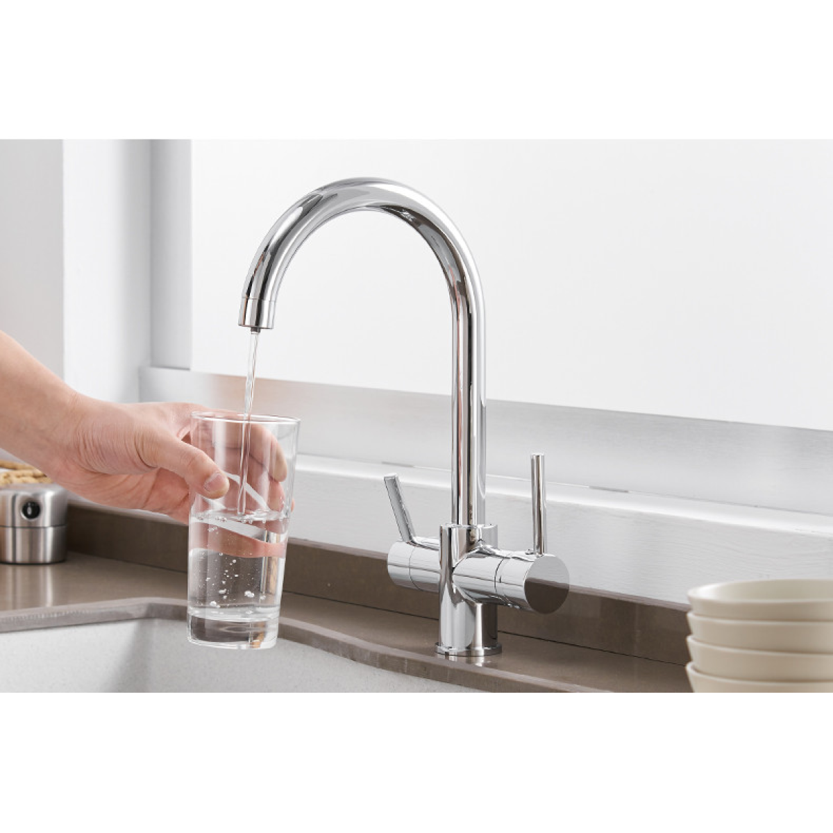 Змішувач для раковини на кухню двоважільний з краном для фільтрованої води WanFan вертикальний монтаж Нікель