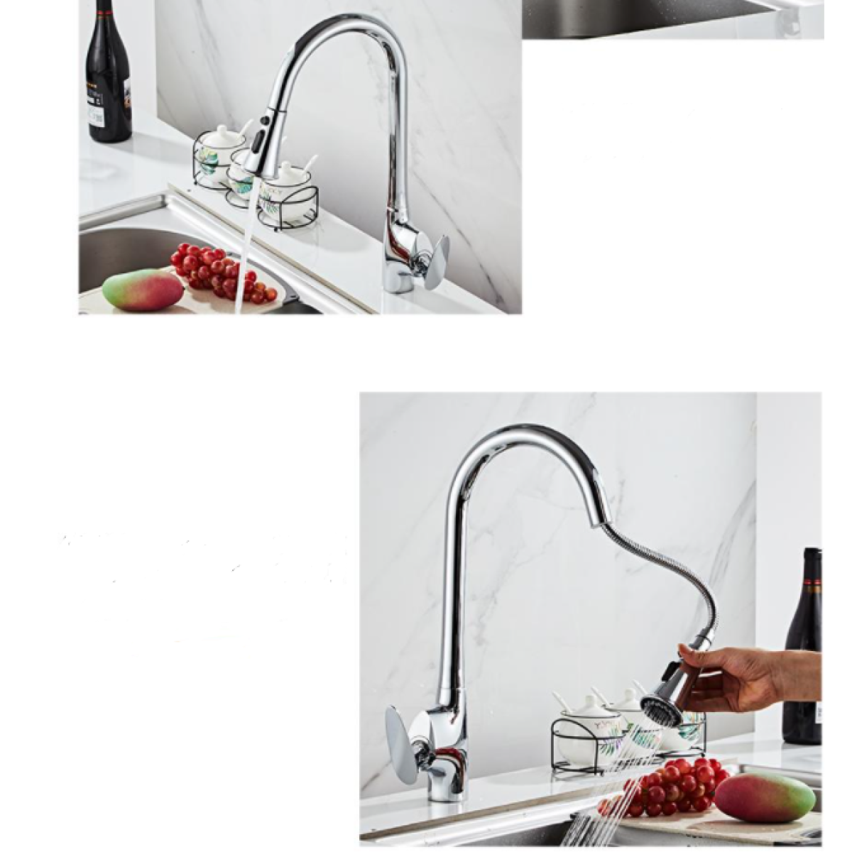 Змішувач кухонний висувний злив кран два режими води обертається на 360 градусів WanFan Хромований