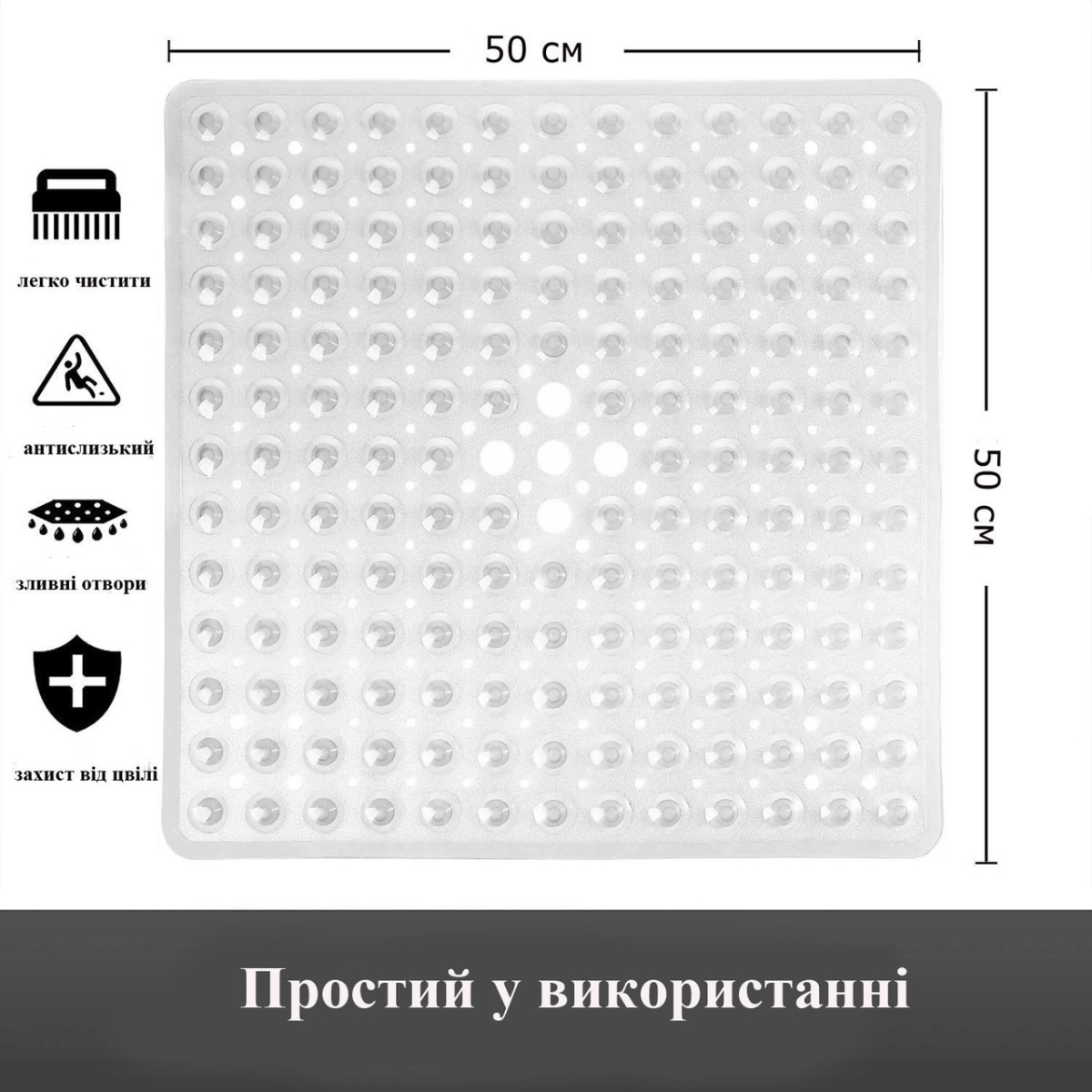 Силіконовий килимок протиковзкий Bathlux на присосках для ванни та душу, квадратний 52*53 см Прозорий