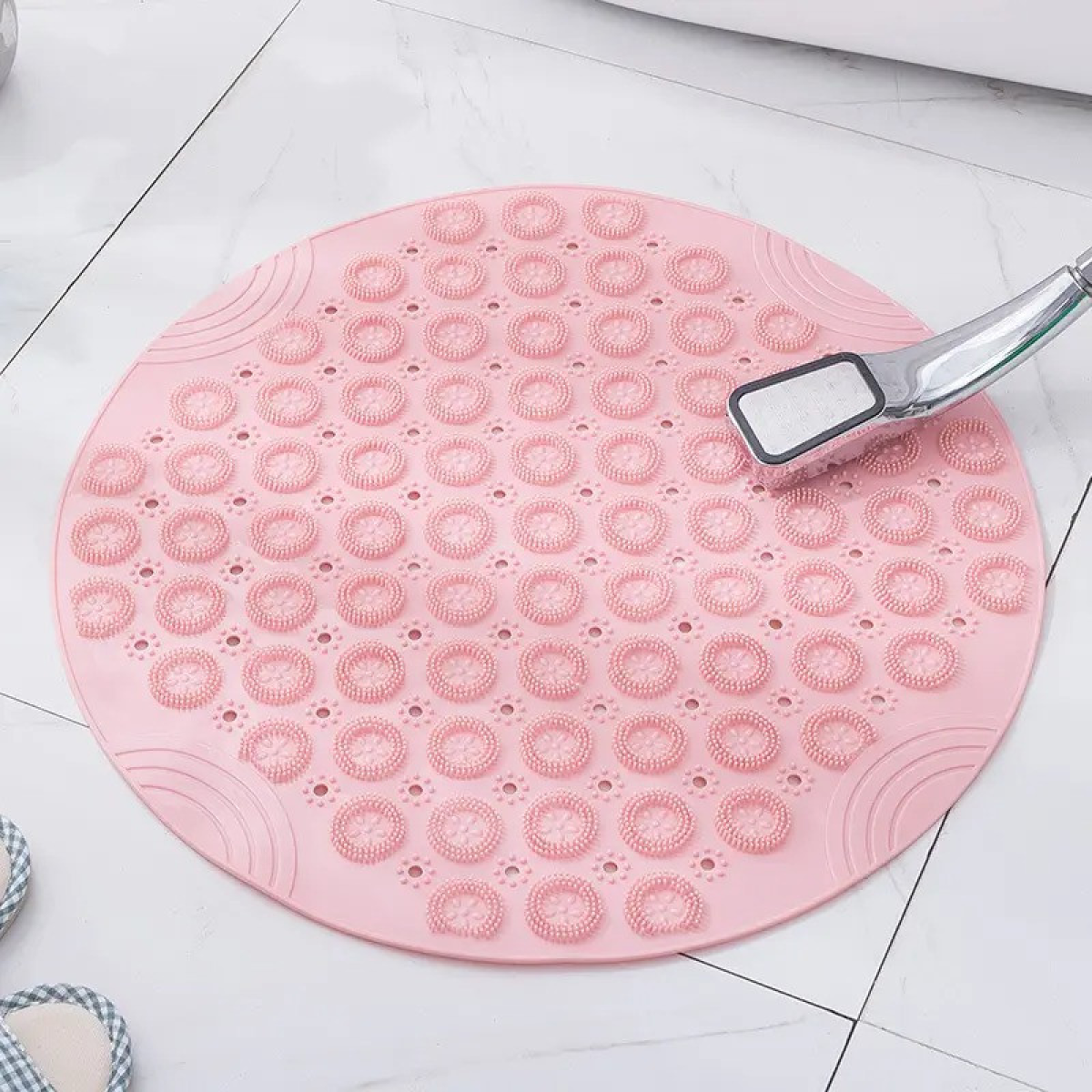 Силіконовий круглий килимок протиковзкий Bathlux на присосках для ванни та душу 55х55 см, Рожевий