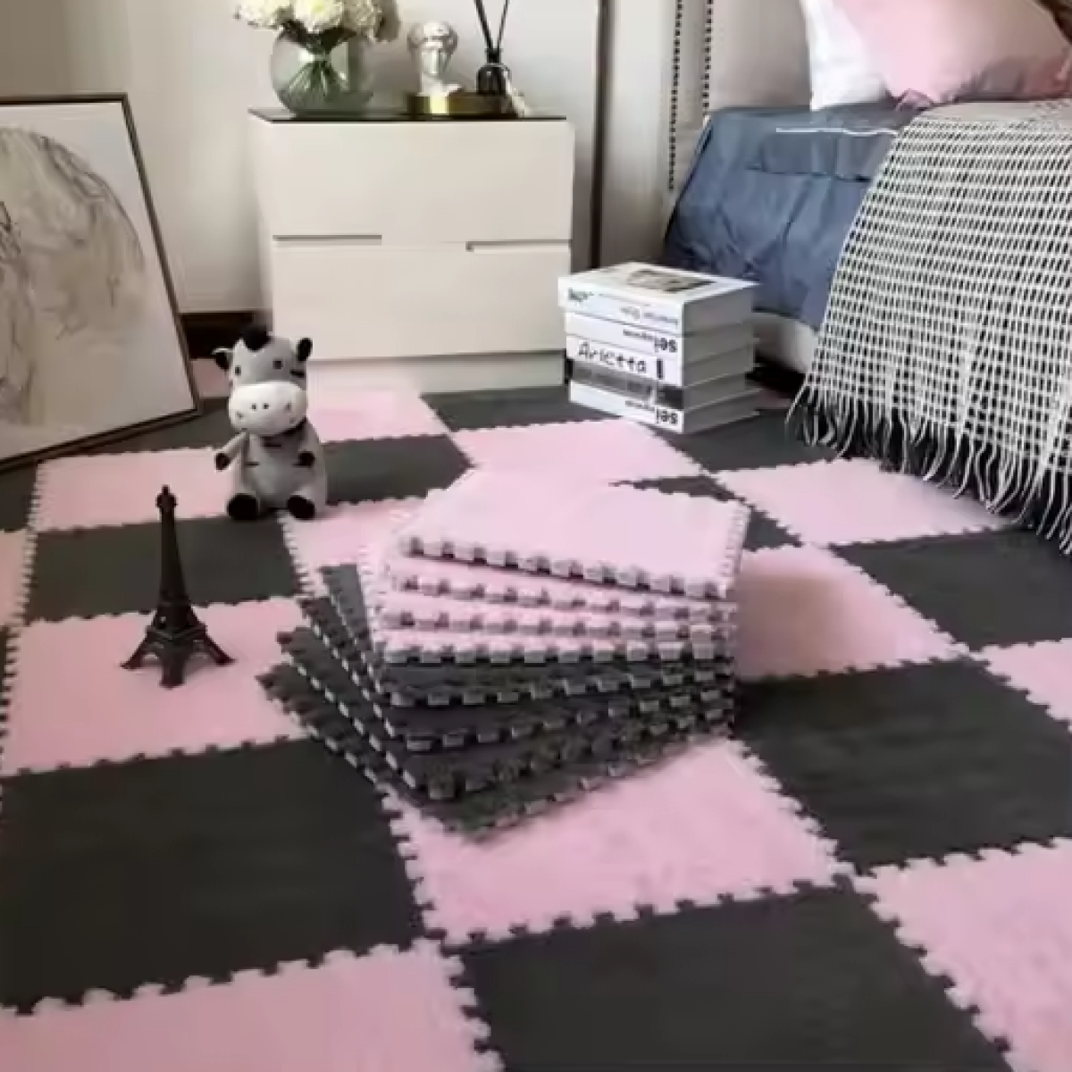 Плюшева підлога-пазл - це модульні плитки для підлоги з EVA-піни з м“яким текстильним покриттям. Кожен елемент (30 x 30 см) оснащений замковими з“єднаннями, що дає змогу легко складати їх у великий килимок будь-якої форми. Плюшева поверхня робить килимок комфортним, теплим і м“яким для підлоги. Ідеально підходить для дитячих кімнат, ігрових зон, місць відпочинку, теплих і м“яких килимків на підлогу. Матеріал основи: EVA піна - термопластичний полімер, що забезпечує гнучкість, теплоізоляційні та амортизаційні властивості. Текстильний шар: плюшевий ворс із поліефірних волокон, стійкий до зношування, не мнеться і швидко висихає. Догляд простий: покриття легко миється і зберігає м“якість, має антиковзкий ефект завдяки текстурованій основі та антистатичним добавкам. Характеристики: Розміри: 30 x 30 см Товщина: основний шар 1 см + плюшевий ворс 0.6 см Вага: 150 г / шт. Проста збірка і можливість комбінувати різні кольори