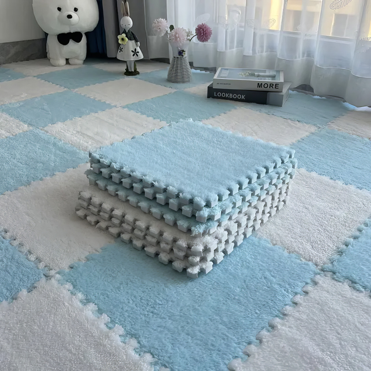 Підлога-пазл плюшева 60x150см, 10 пазлів, тепла підлога, дитячий мат, термокилимок для дому, колір блакитний