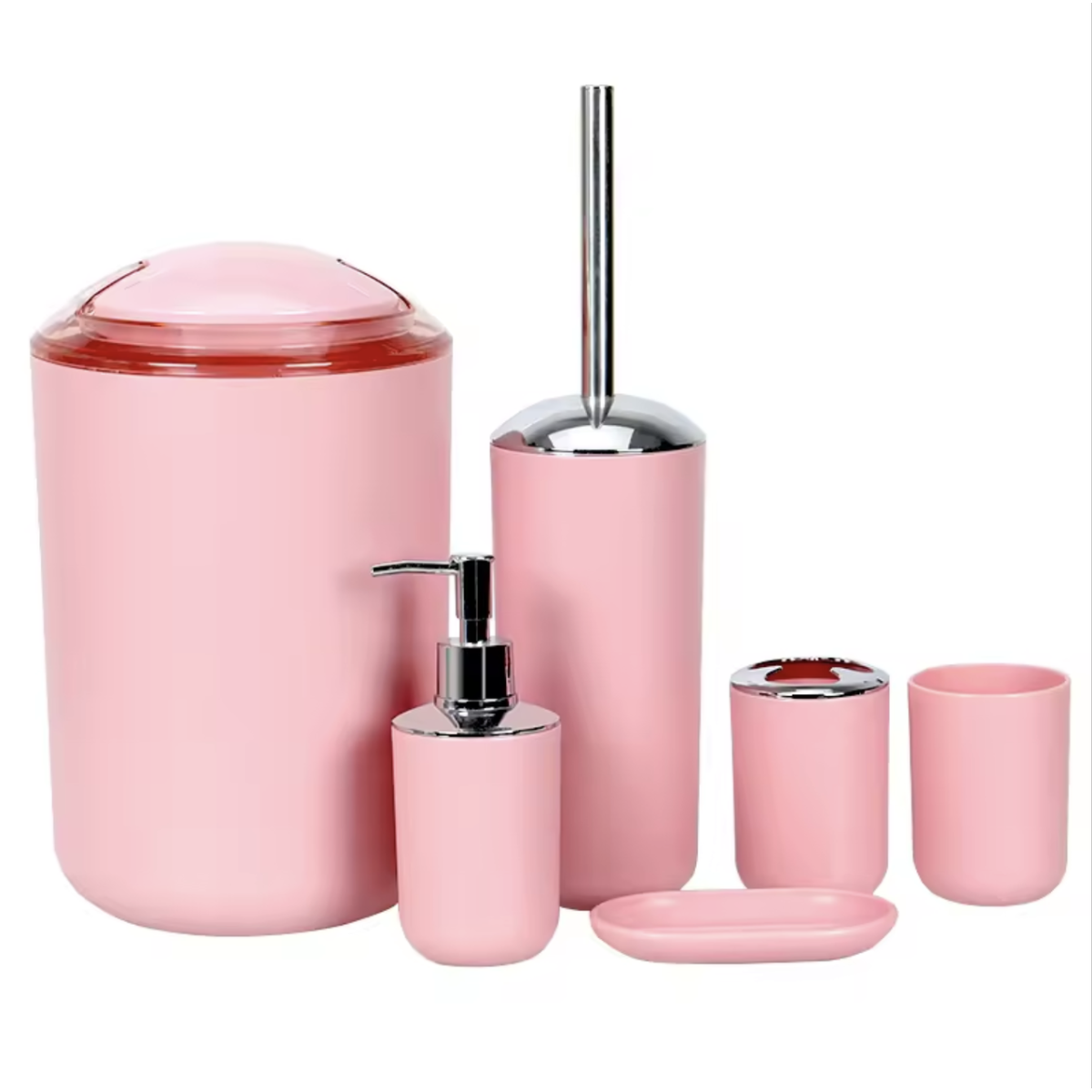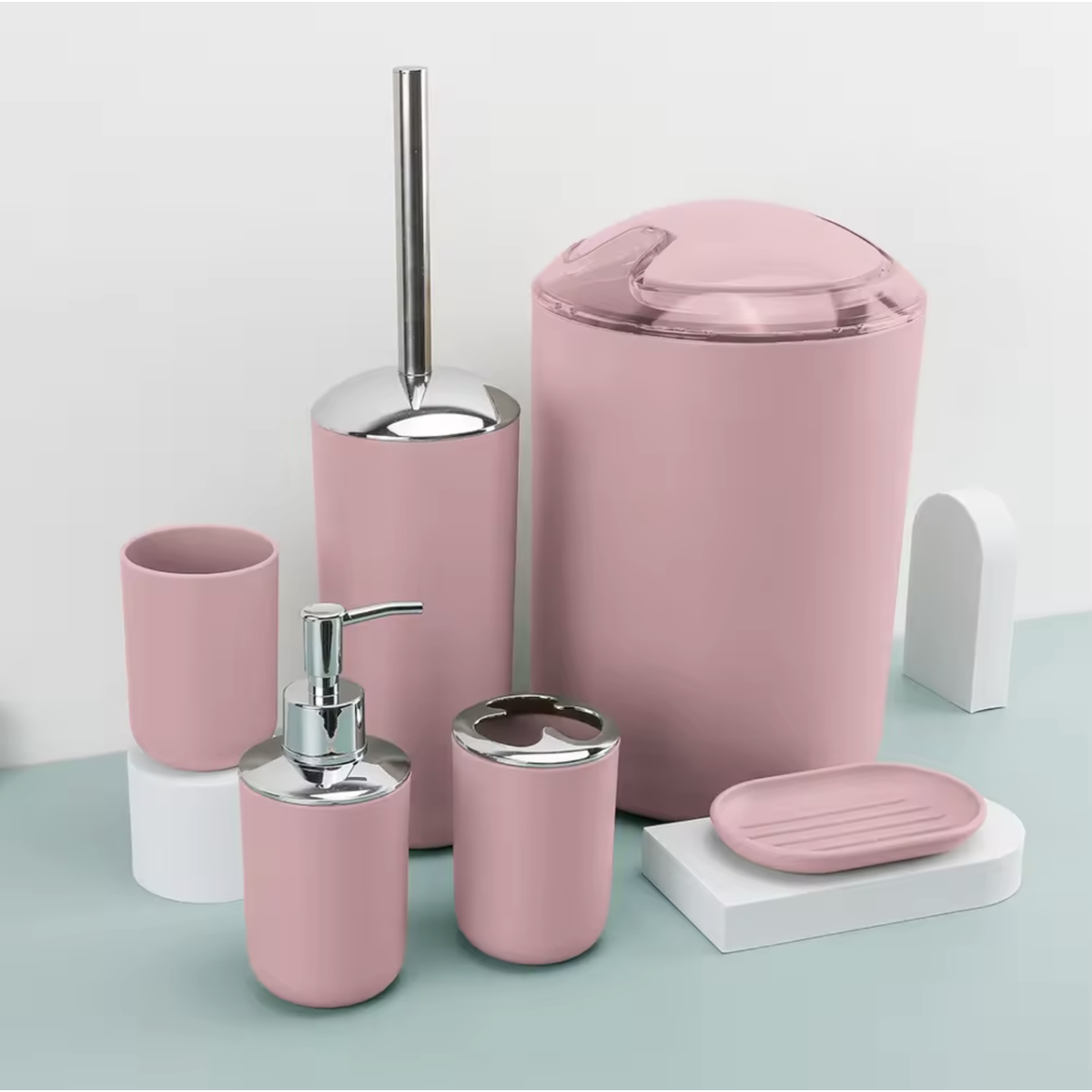 Набір якісних стильних аксесуарів для ванної кімнати Bathlux з 6 предметів, Розовий