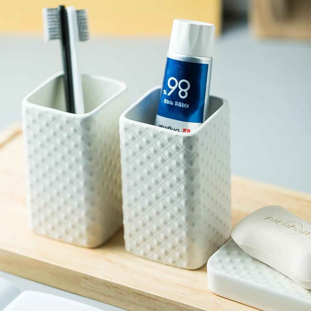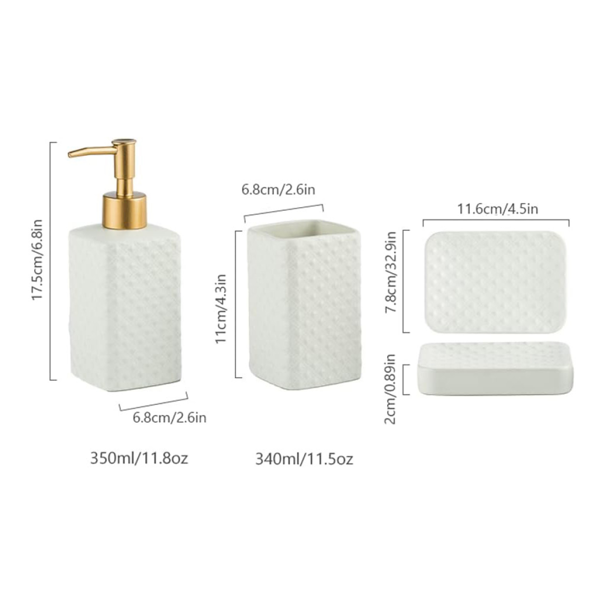 Комплект керамічних аксесуарів для ванни: дозатор, мильниця, стакани Білого кольору