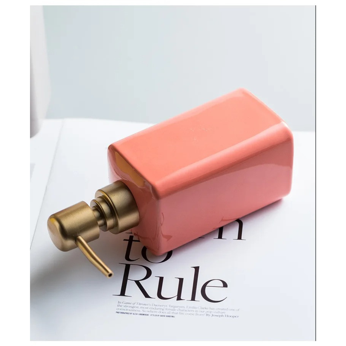 Стильний диспенсер для мила з кераміки на 320 мл, пляшка з дозптором для рідкого мила чи шампуню, Рожевий