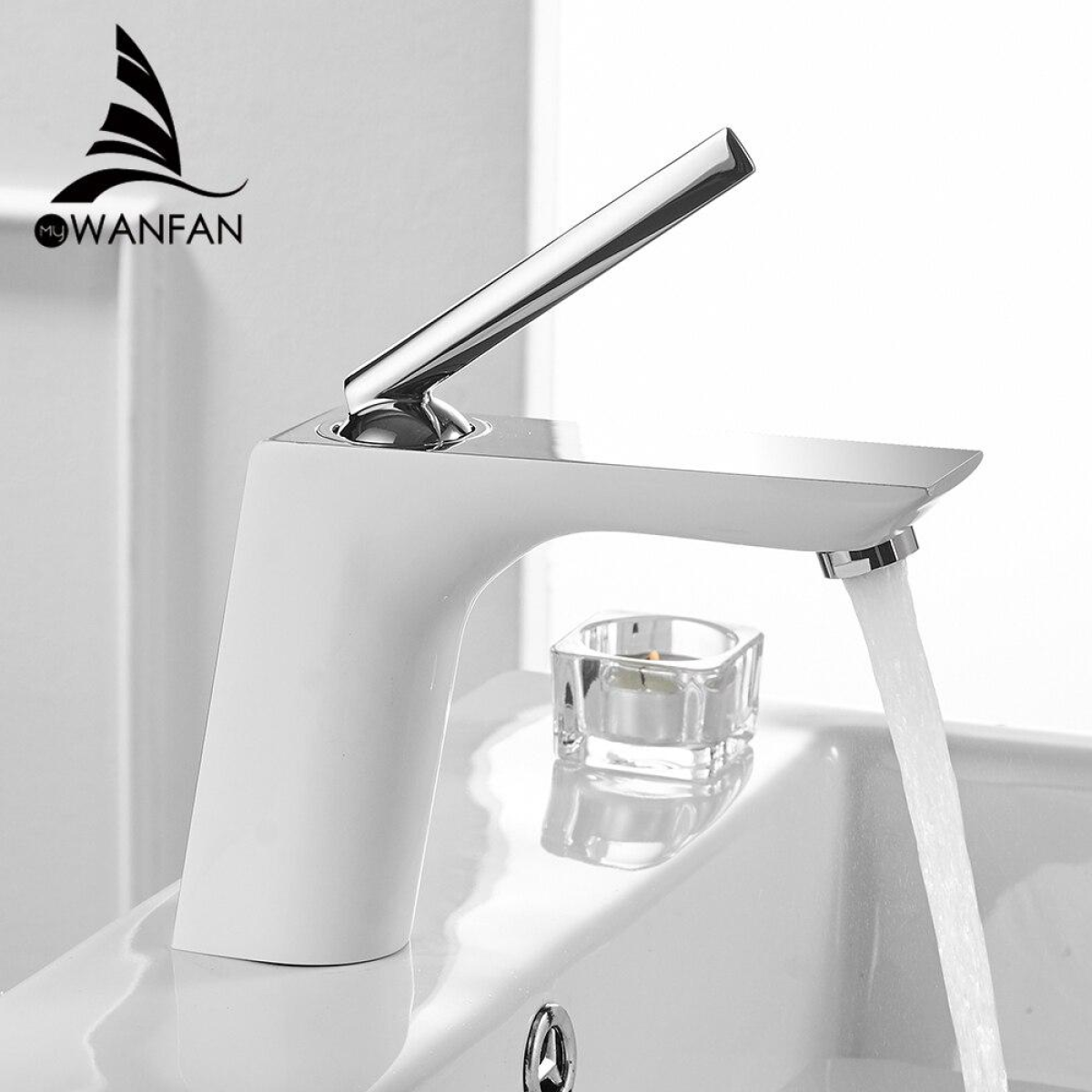 Змішувач для умивальника WanFan люкс якості, з одним важелем Білий-хром