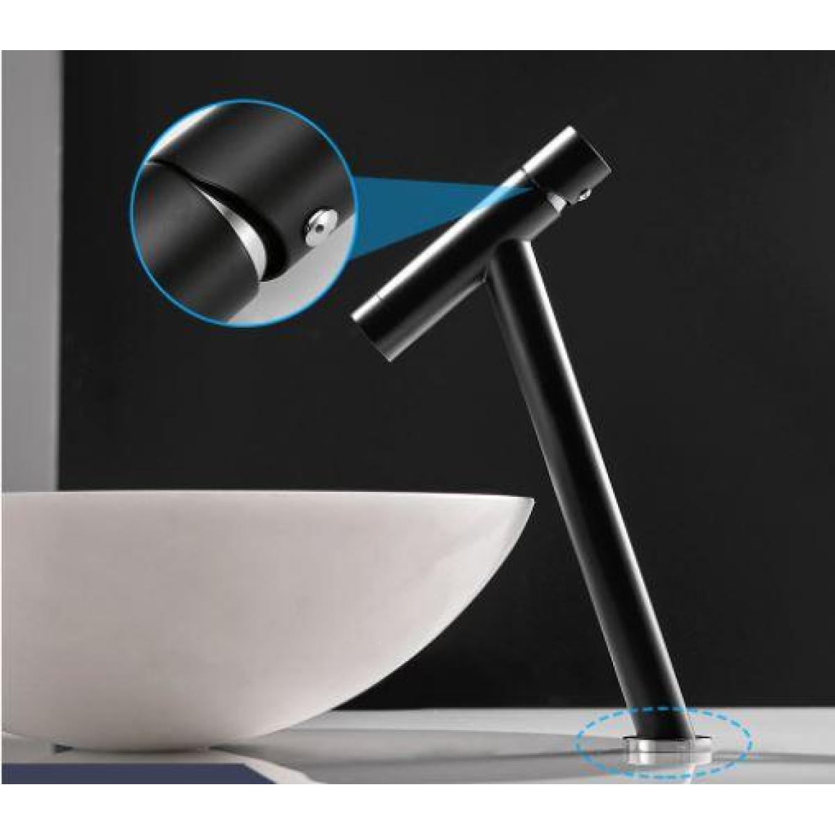 Змішувач для умивальника високий вилив одноважільний кран горизонтальний монтаж WanFan для ванни Чорний-хром