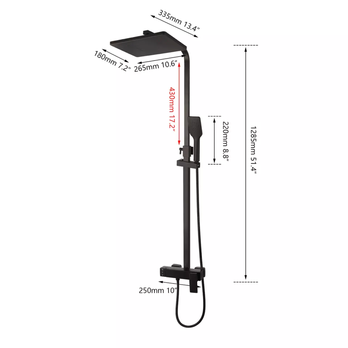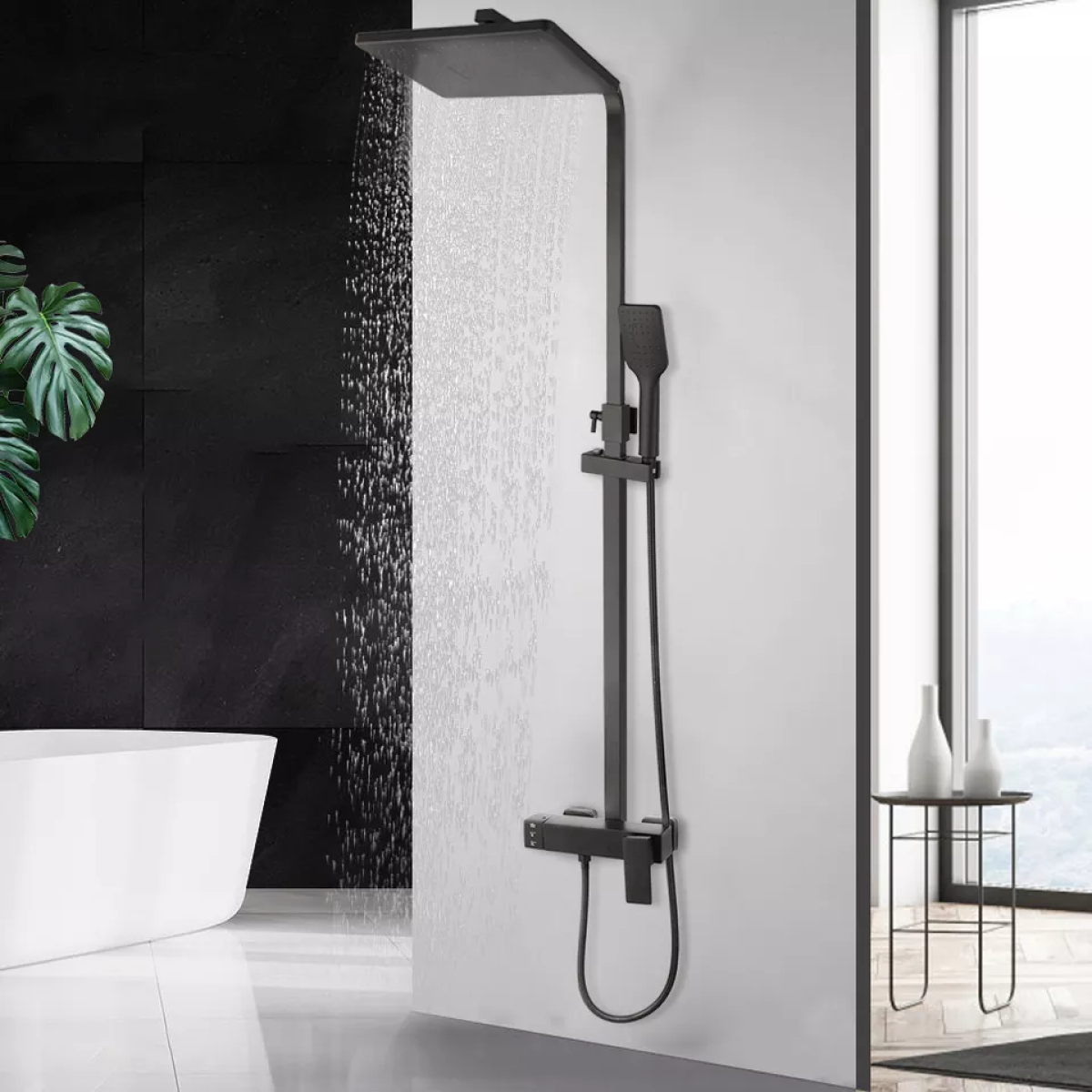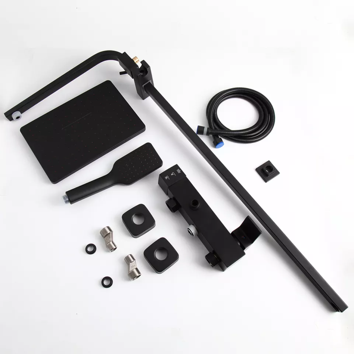 Гарнітур душовий настінний з латуні 2в1 квадратний настінний душ і класична розпилювальна лійка, Чорний