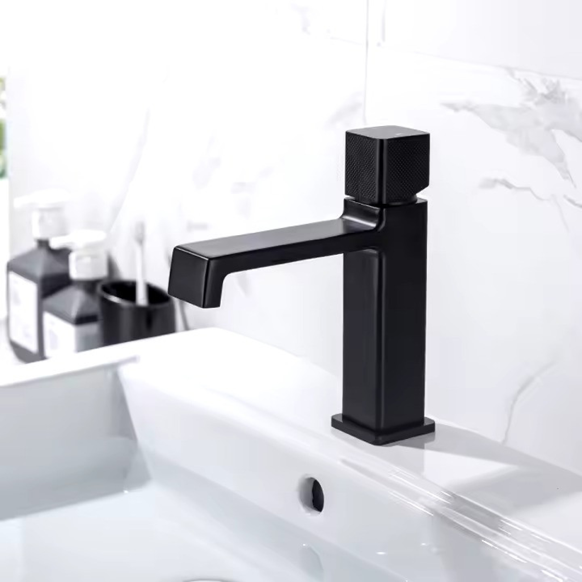 Змішувач для умивальника, раковини з латуні дизайнерський, одноважільний колір чорний
