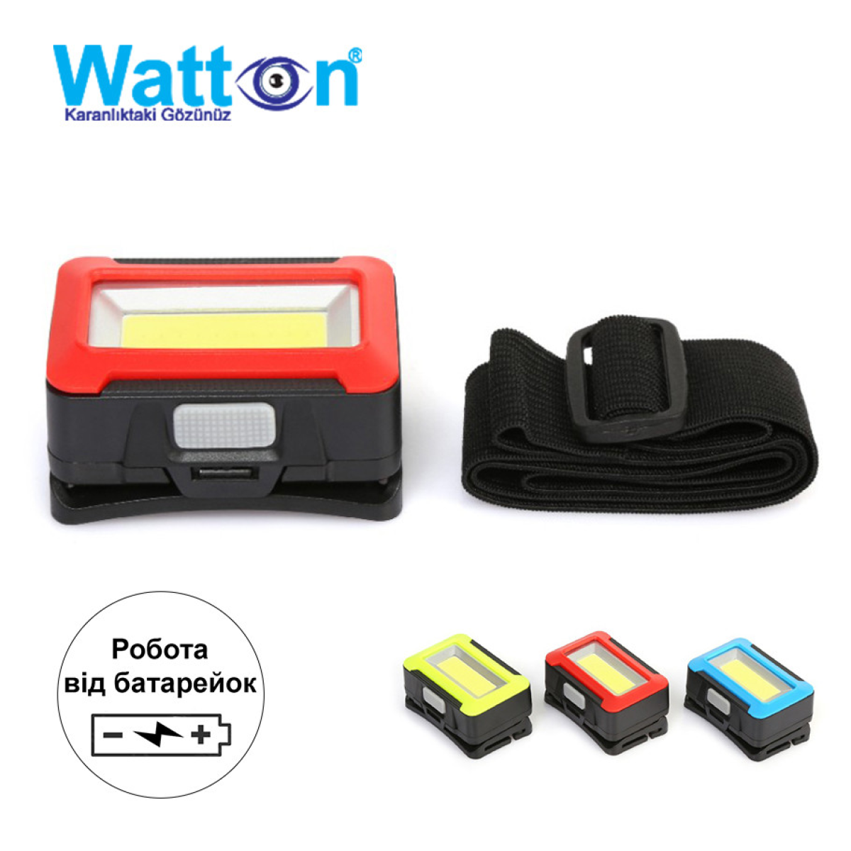 Ліхтар-фара на 3 батареях AAA WATTON WT-071 дальністю 100 метрів, кріплення в комплекті