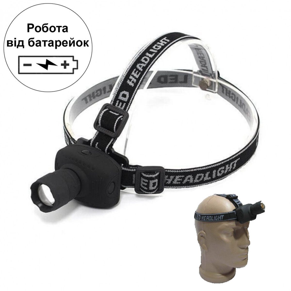 Тактичний налобний ліхтар із зумом BIGEM BM-005 дальністю 100м на батарейках, три режими роботи