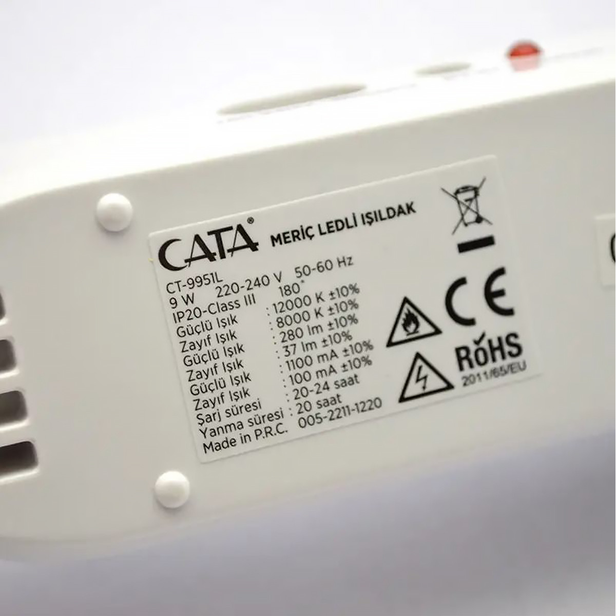 Ліхтарик на акумуляторі CATA CT-9951L стане незамінним у домашньому господарстві, на дачі, на риболовлі, під час відпочинку на природі, а особливо там, де відбуваються часті перебої з електроенергією.