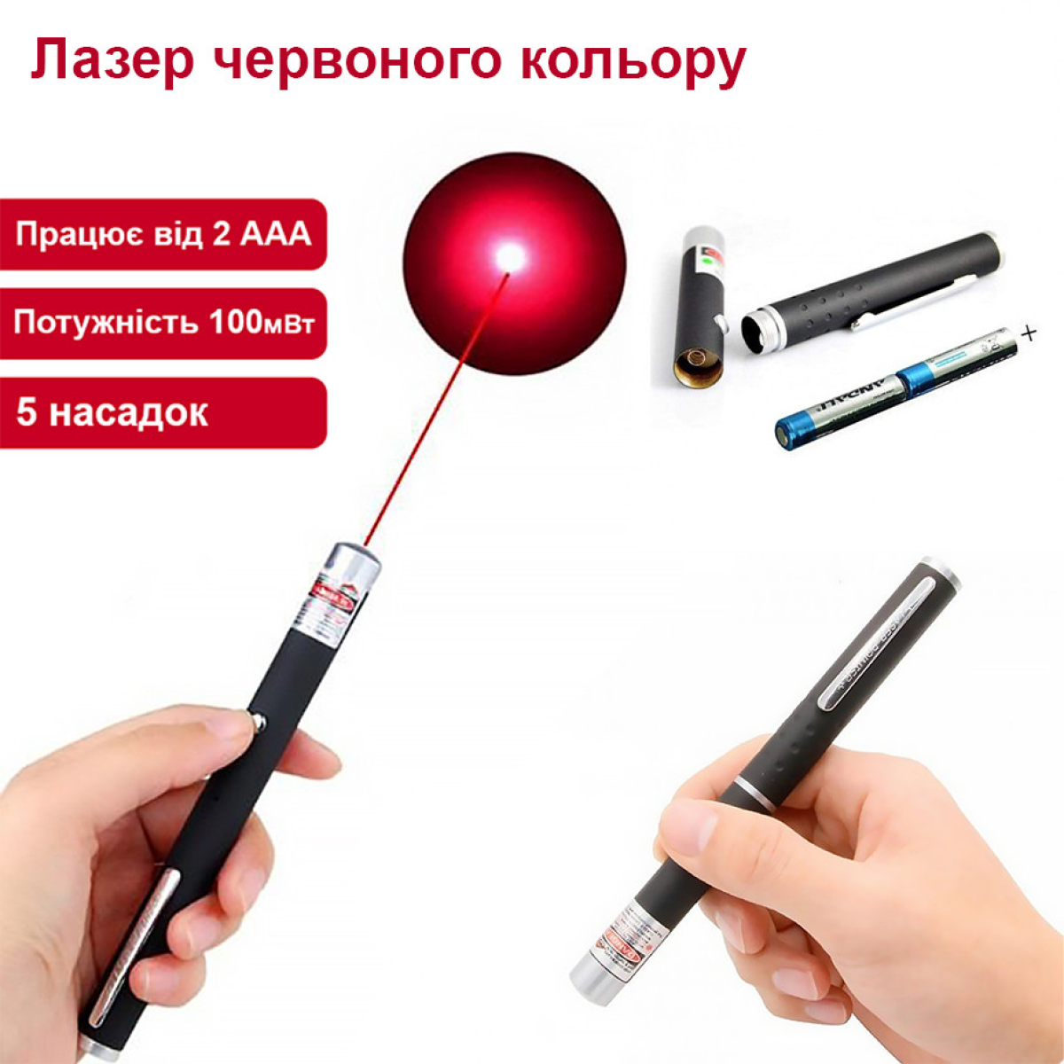 Лазер червоний - чудова і цікава річ, яка обов“язково Вам сподобається. Лазерна указка має яскравий червоний колір і на кінці світіння показує червону точку. Ви можете використовувати аксесуар для різних цілей. Лазер стане в нагоді вчителям і викладачам, лікарям, а також просто для повсякденного використання або для розваги. Крім того, лазерні указки дуже люблять деякі тварини. Характеристики: Простий у використанні Лазер – гарний подарунок для всіх Свічення – червона точка Кращий вибір для вчителів, викладачів, лікарів, Стане в нагоді для повсякденного використання або для розваг Добре видно у темряві Розмір лазера: 15 см. Розмір наконечника: 1см. Товщина: 1 см Працює від 2 батарейок ААА. Має вихідну потужність 100 мВт. Комплектація: Лазер 5 насадок 2 батареї (AAA)