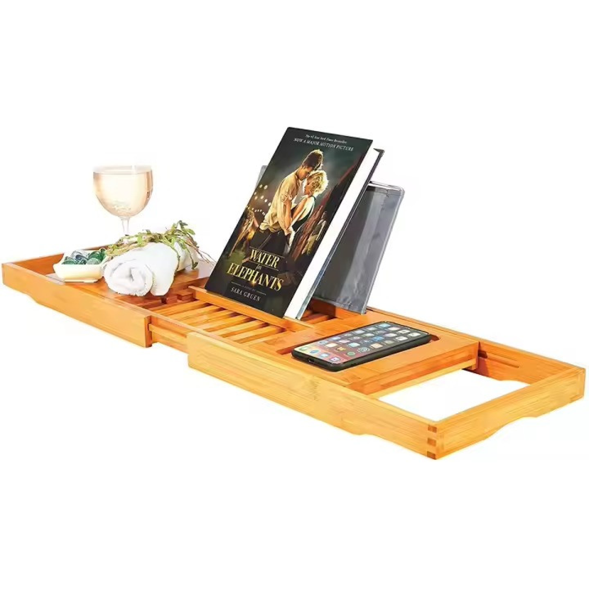 Полиця бамбукова висувна для ванної, довжина 70-105см, накладка на ванну з бамбука, Bamboo_1