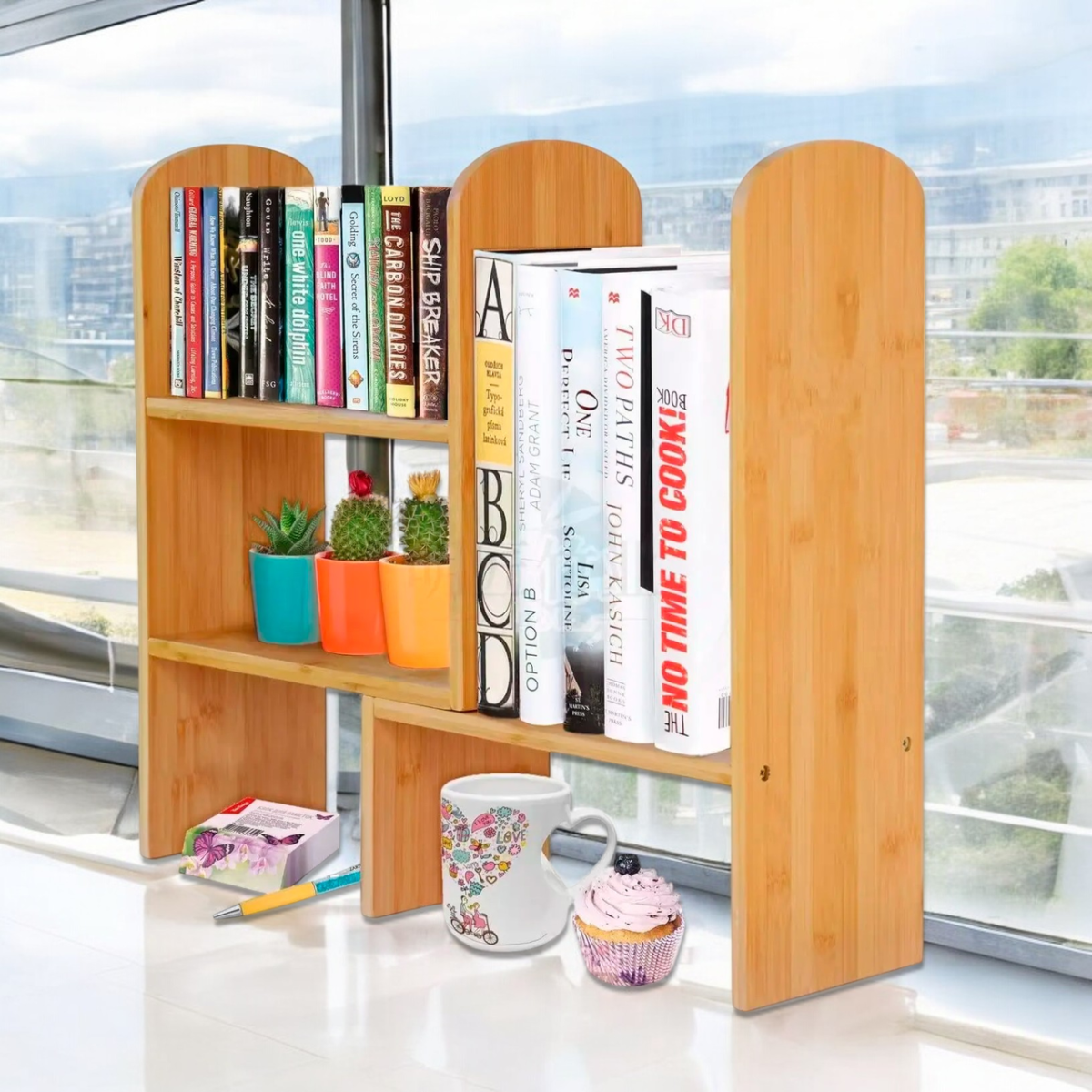 Настільна полиця з бамбука для книг і аксесуарів з можливістю регулювання положення, 65×45×15см
