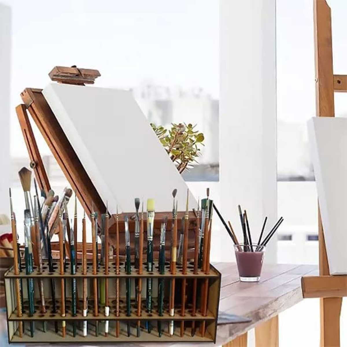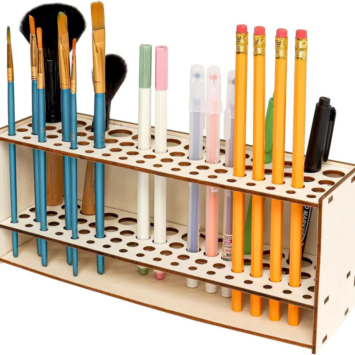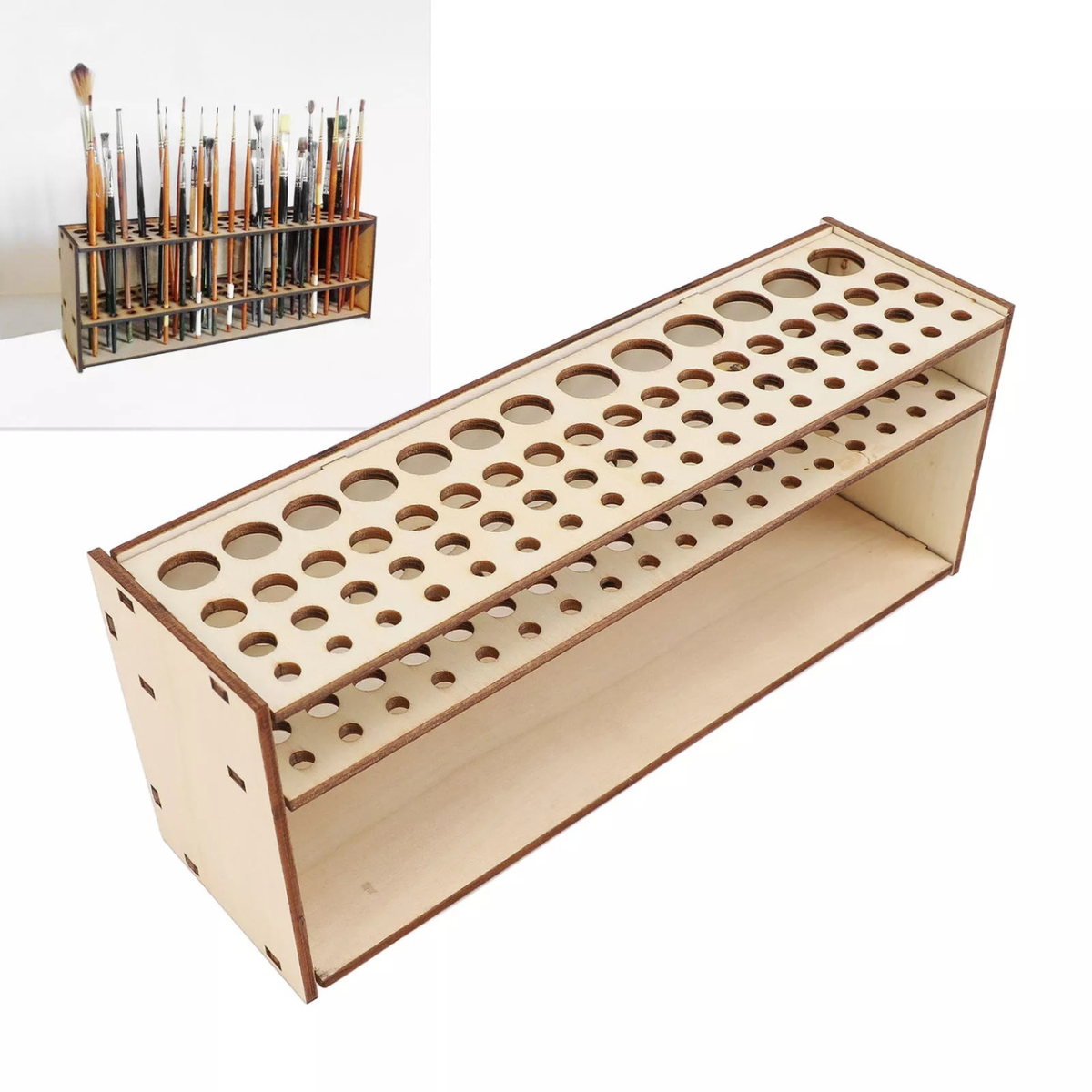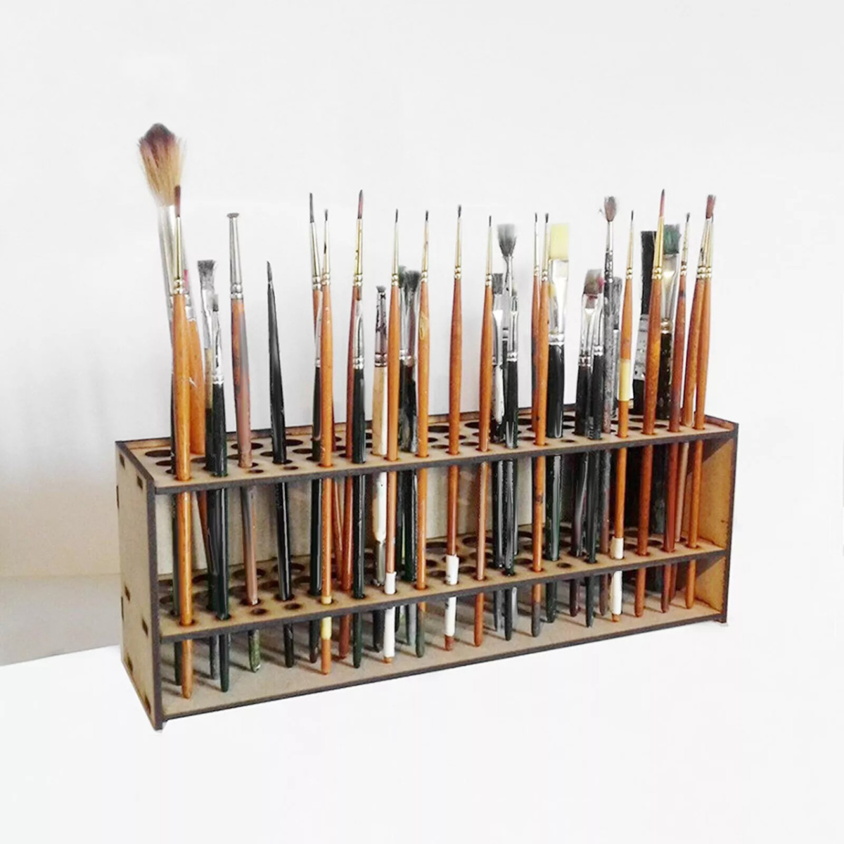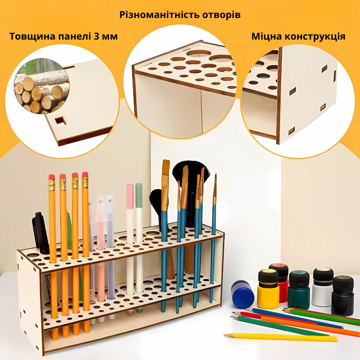 Тримач дерев“яний для пензлів, ручок, олівців. настільний, настінний органайзер для пензлів, 67 отворів
