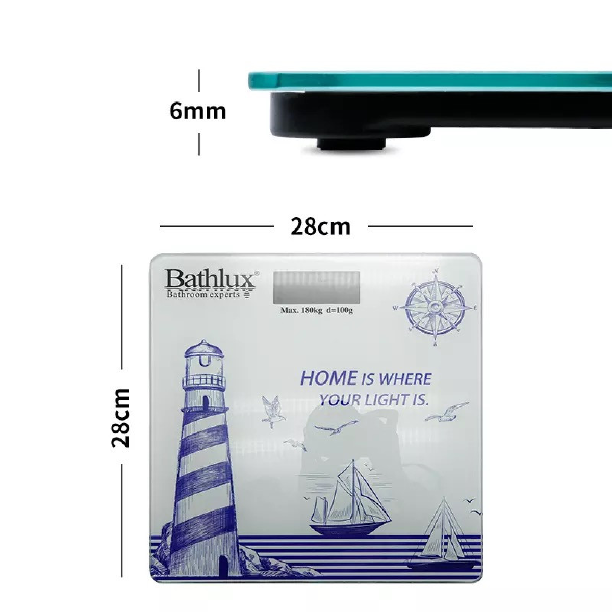 Підлогові ваги Bathlux виконані із загартованого скла, супероточные, до 180 кг, дизайн Navy style